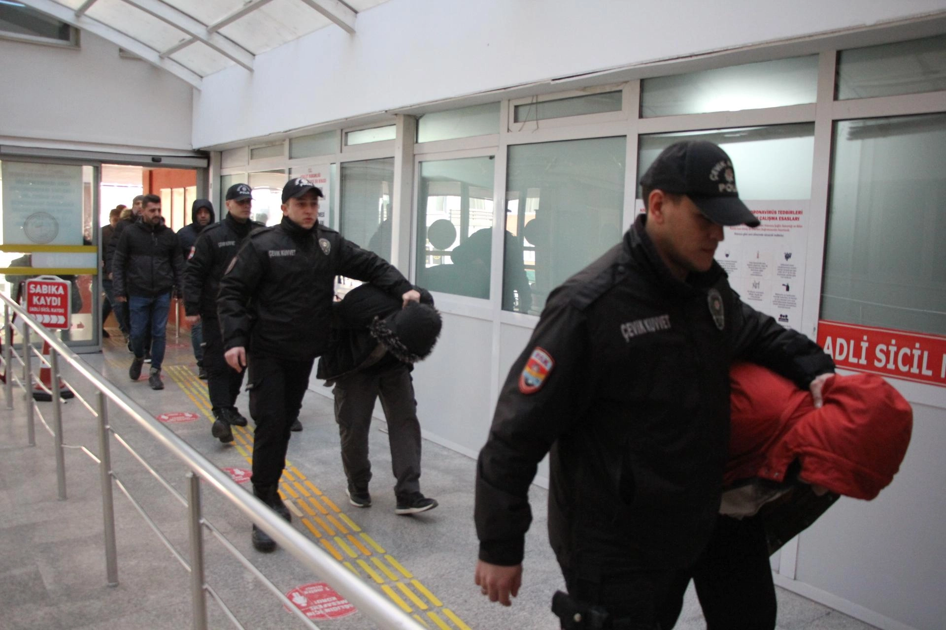 Kocaeli Adliyesine getirilen zanlıların savcılık sorguları sürüyor.