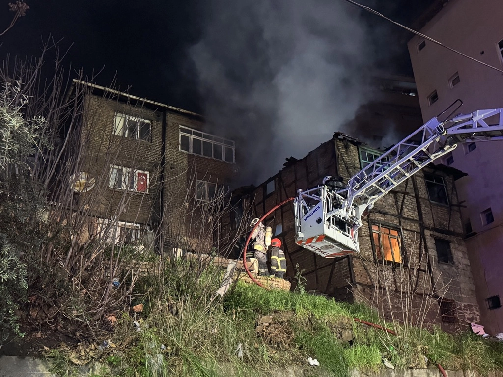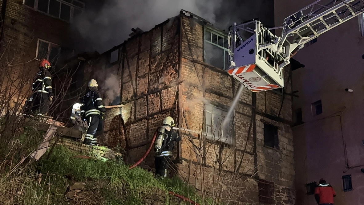 Kadıköy Mahallesi Turan Güneş Caddesi'nde iki katlı metruk binada, henüz belirlenemeyen nedenle yangın çıktı.