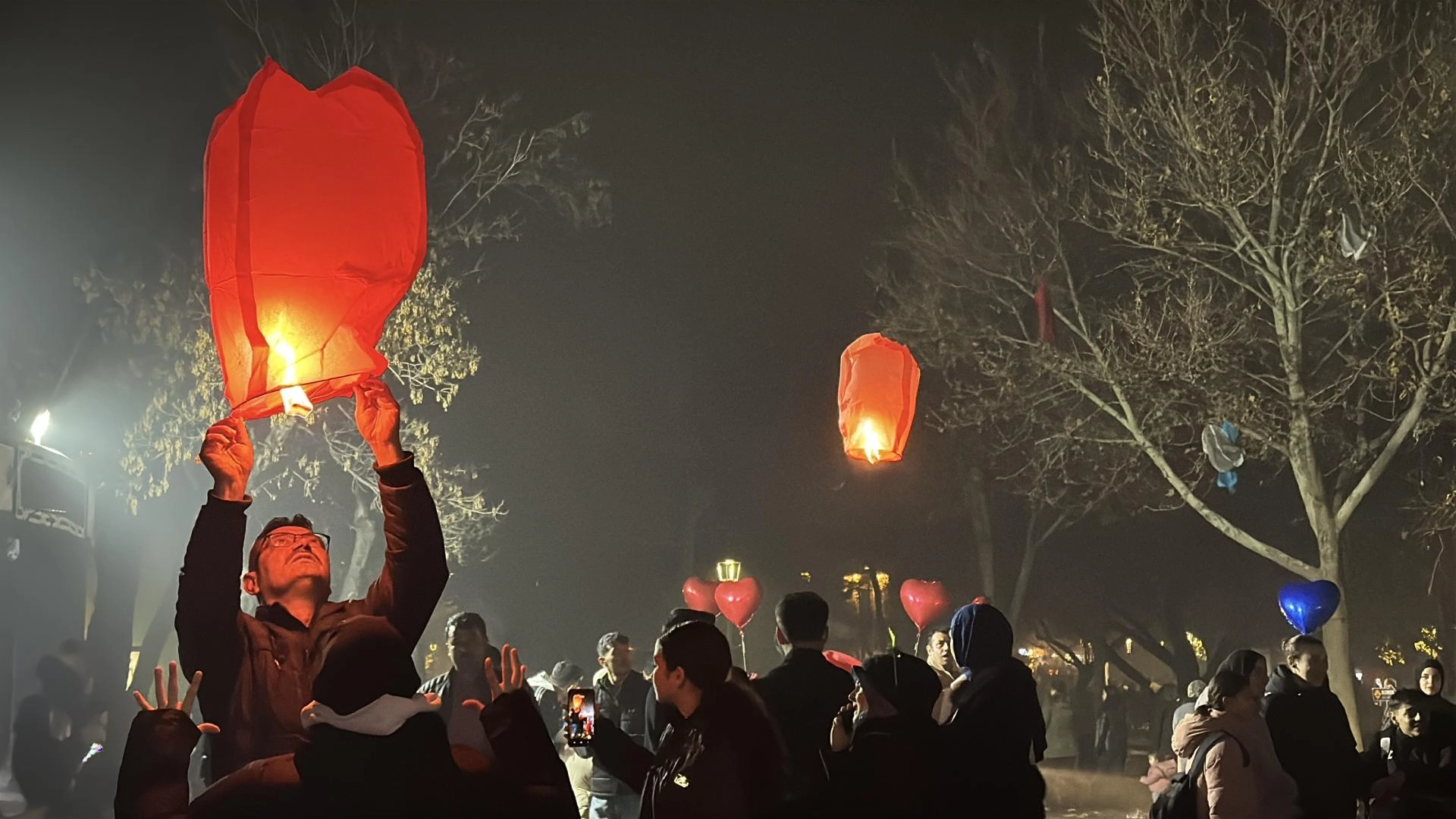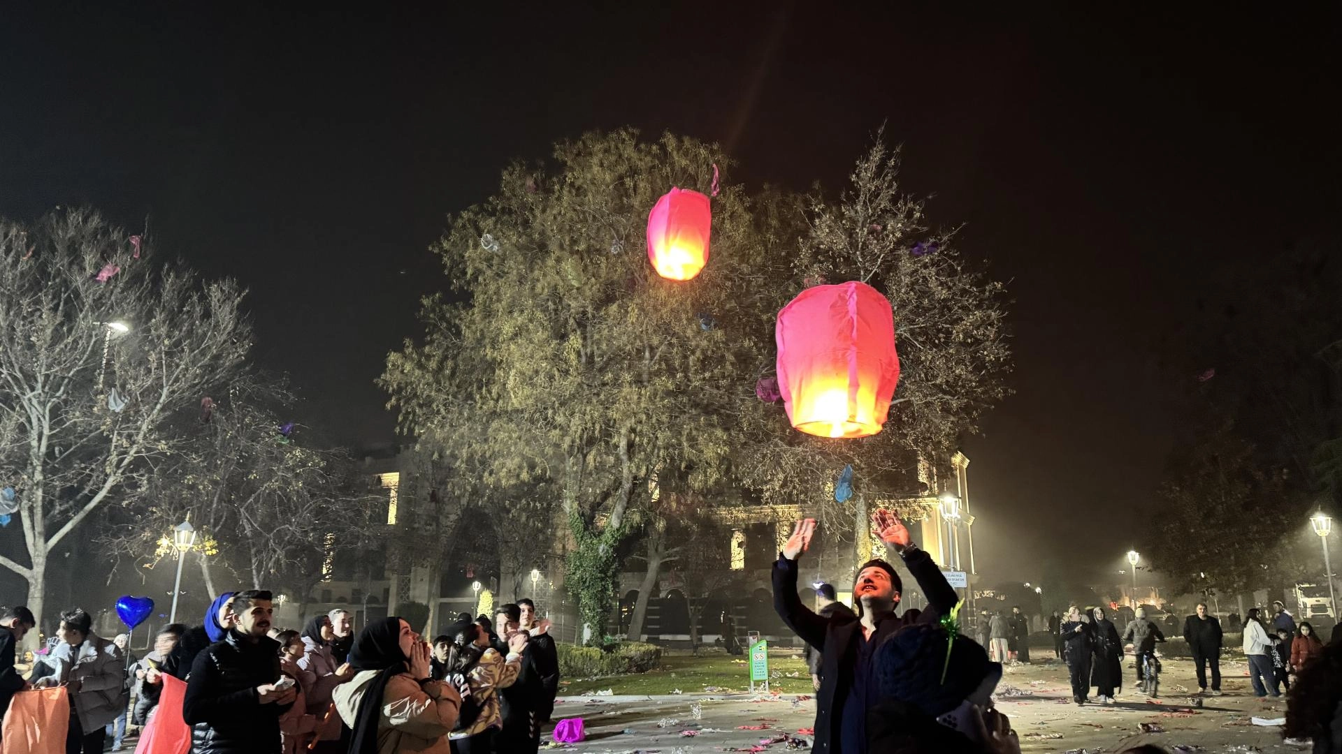 Kültürpark'a çocuklarıyla gelen çok sayıda vatandaş, yaktıkları fenerleri gökyüzüne uçurdu.