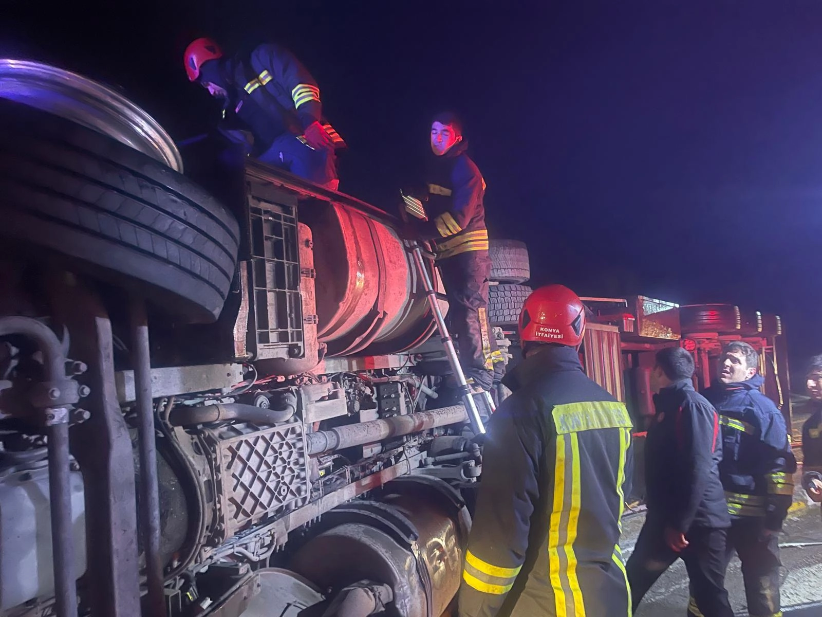 Yaralanan tır sürücüsü, sıkıştığı yerden itfaiye ekiplerinin yoğun çalışmasıyla çıkarılarak ambulansla Kulu Bölge Devlet Hastanesine kaldırıldı.