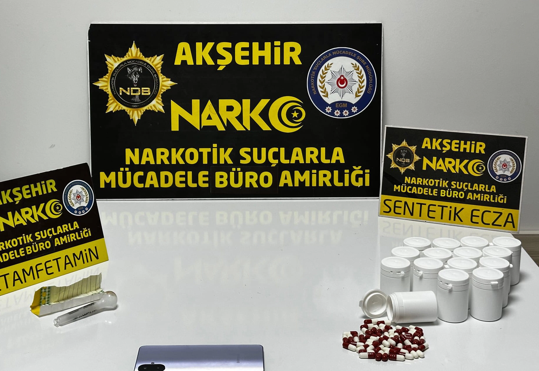 Akşehir İlçe Emniyet Müdürlüğü ekiplerince düzenlenen uyuşturucu operasyonunda, üzerinde ve evinde 800 uyuşturucu hap bulunan şüpheli F.D. gözaltına alındı.
