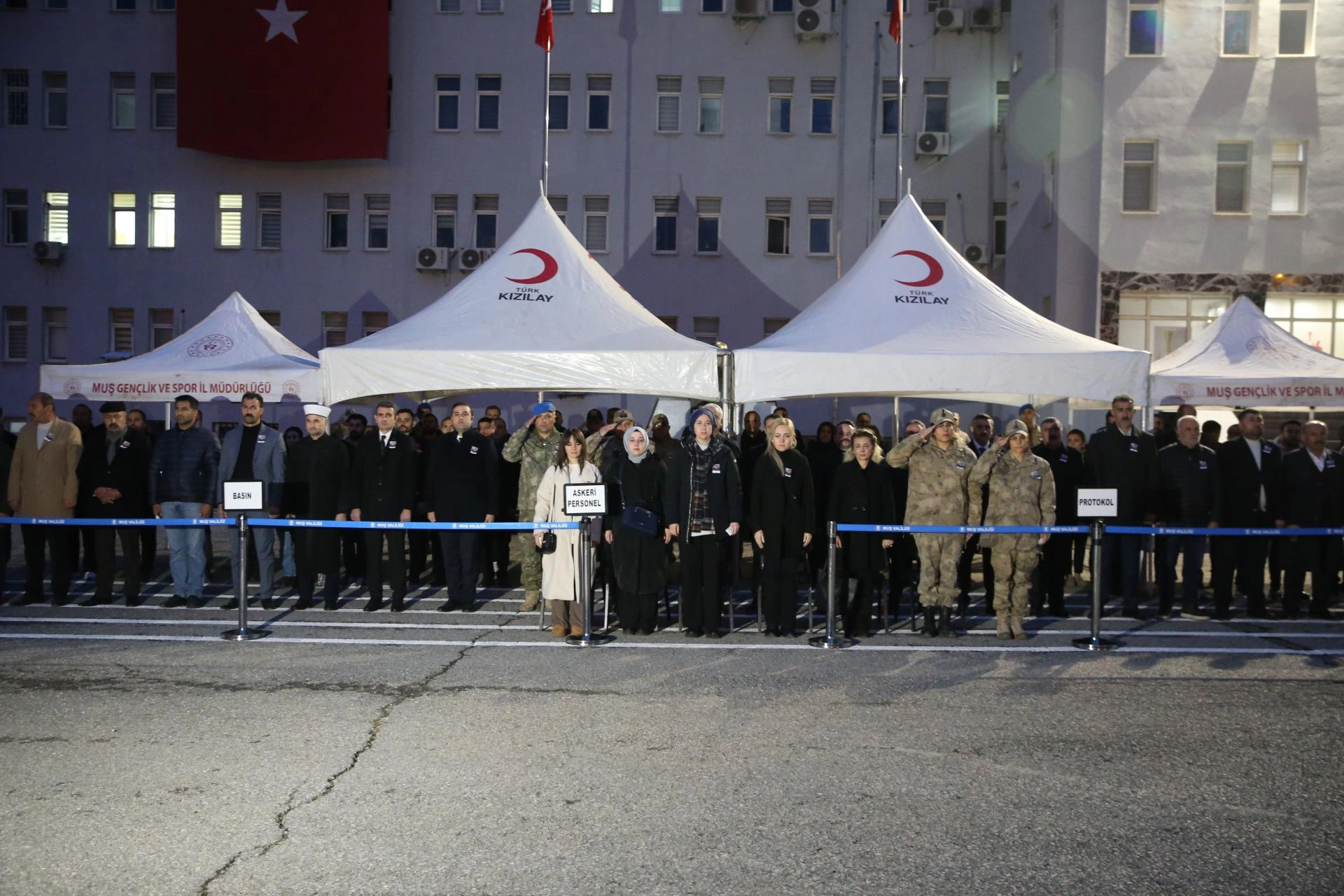 Törene İl Jandarma Komutanı Albay Özgür Özer, İl Emniyet Müdürü Melih Kuzudişli, Muş Cumhuriyet Başsavcısı Hüseyin Kantar, vali yardımcıları, kaymakamlar, belediye başkanları, kurum amirleri, askerler ve vatandaşlar katıldı.