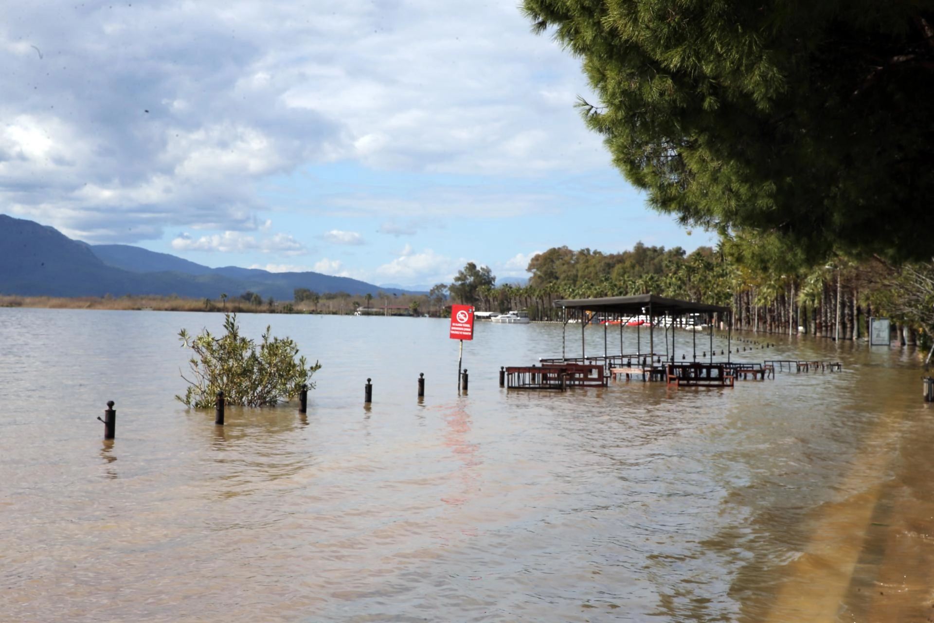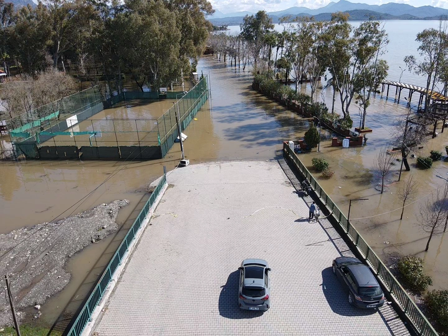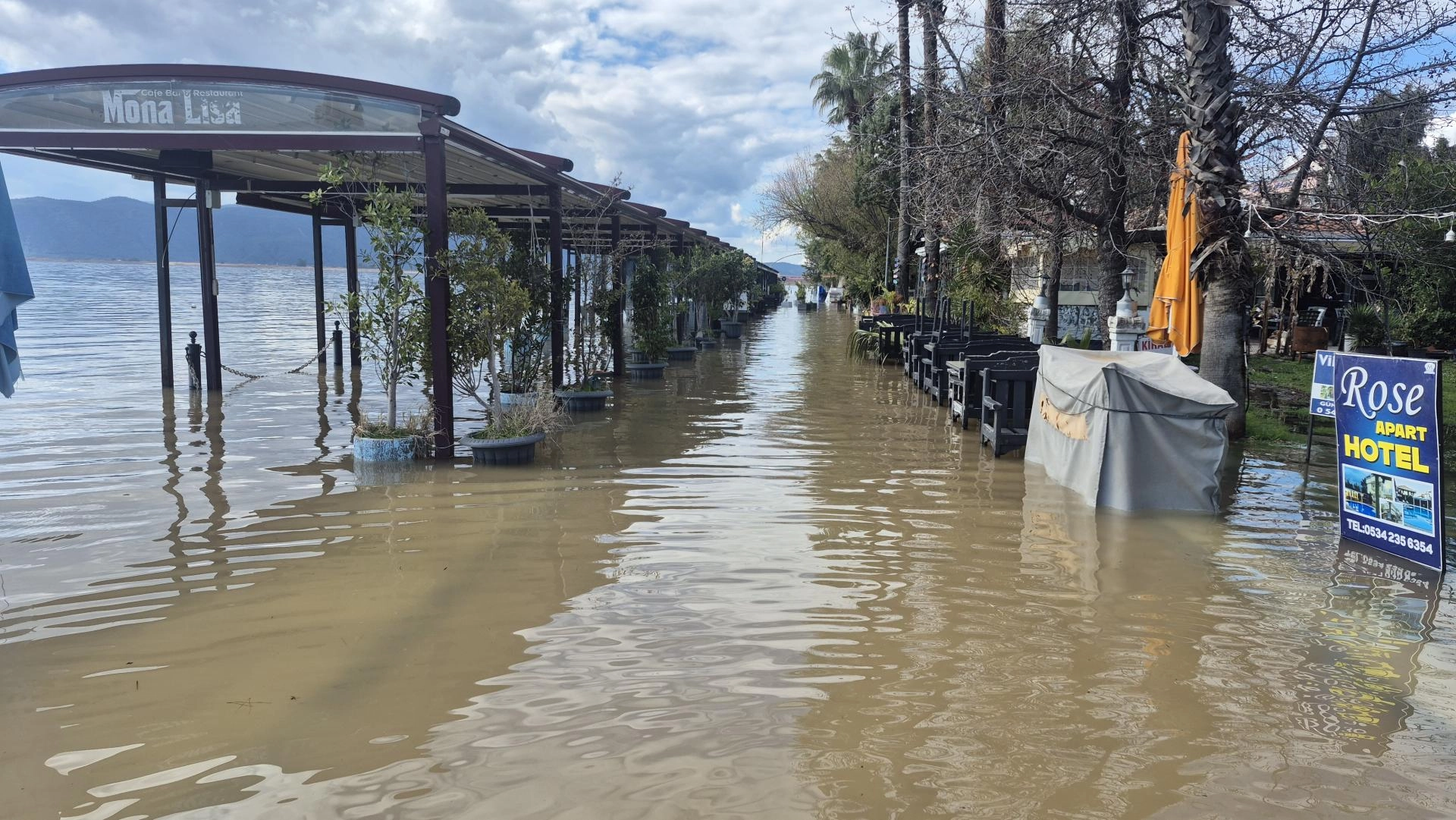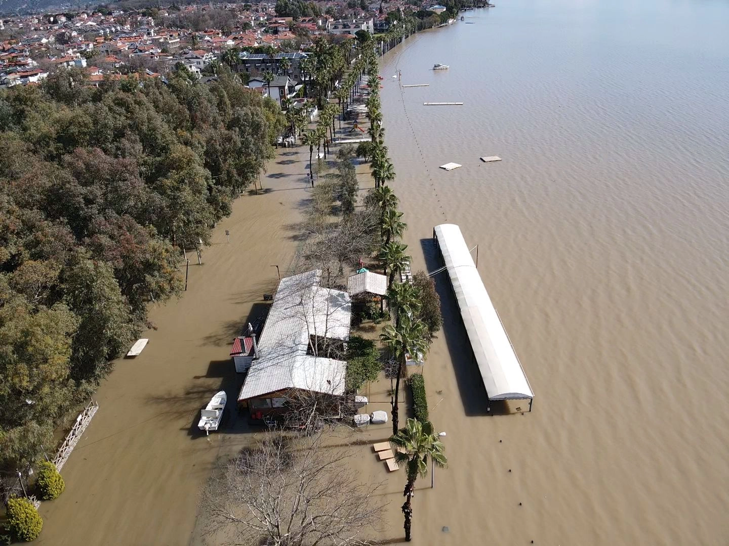 Öte yandan Köyceğiz Gölü'nde oluşan taşkın, su altında kalan işletmeler ve plajlar da AA ekibince dronla görüntülendi.