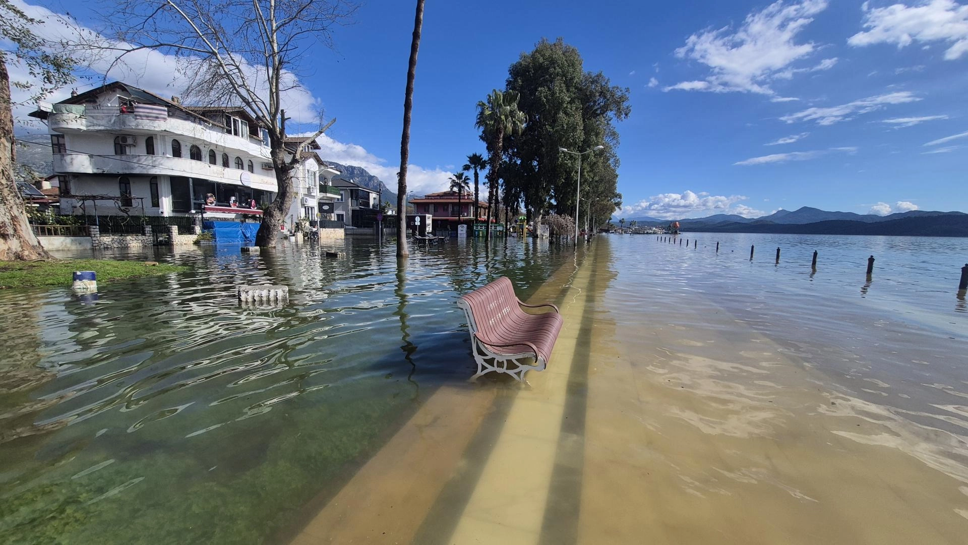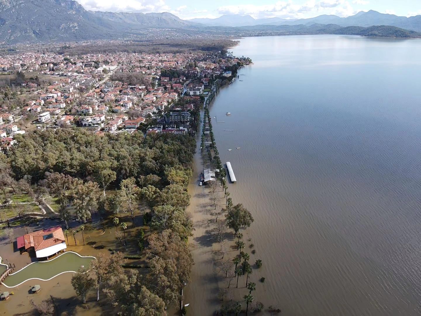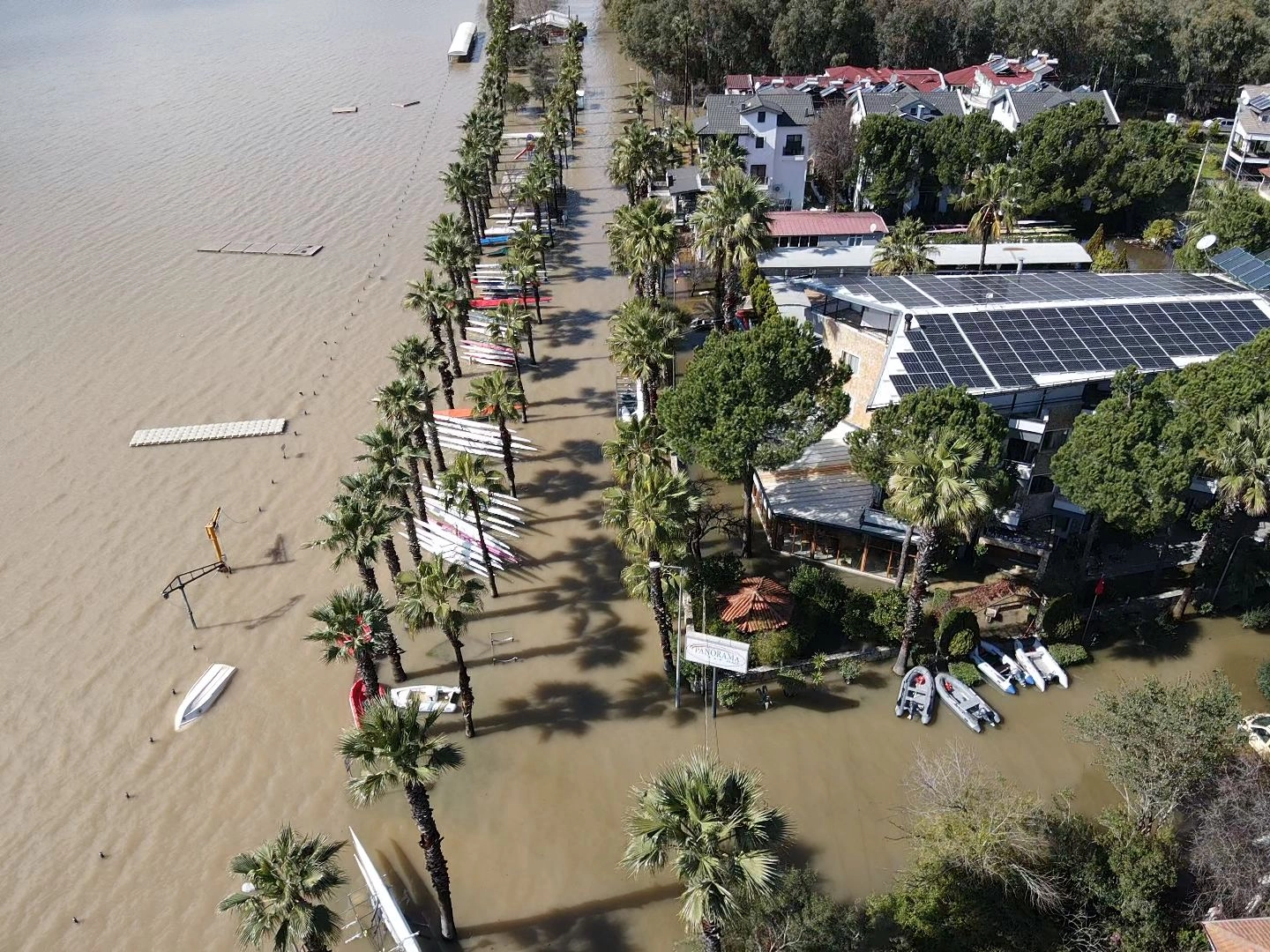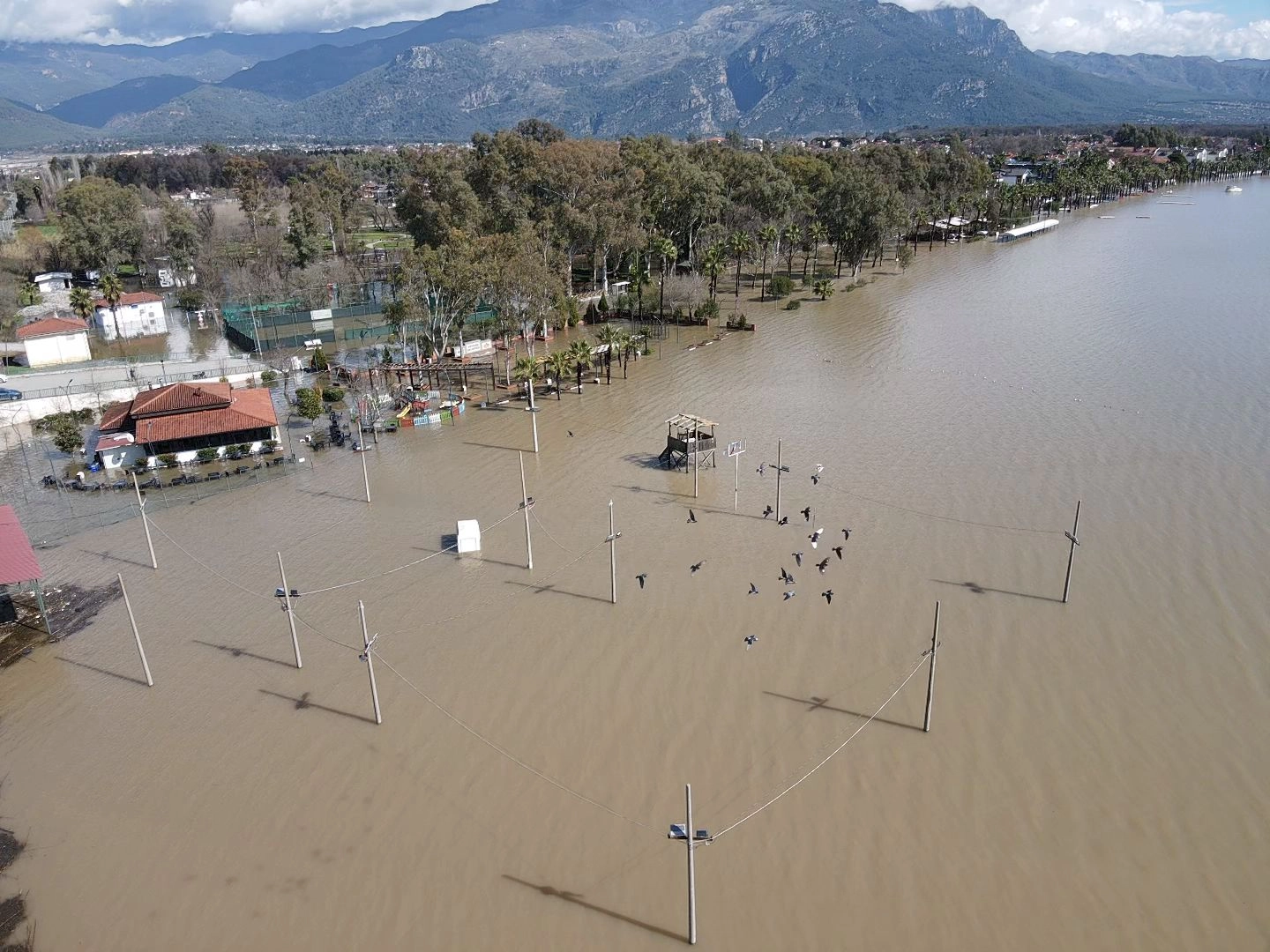 Öte yandan Köyceğiz Gölü'nde oluşan taşkın, su altında kalan işletmeler ve plajlar da AA ekibince dronla görüntülendi.