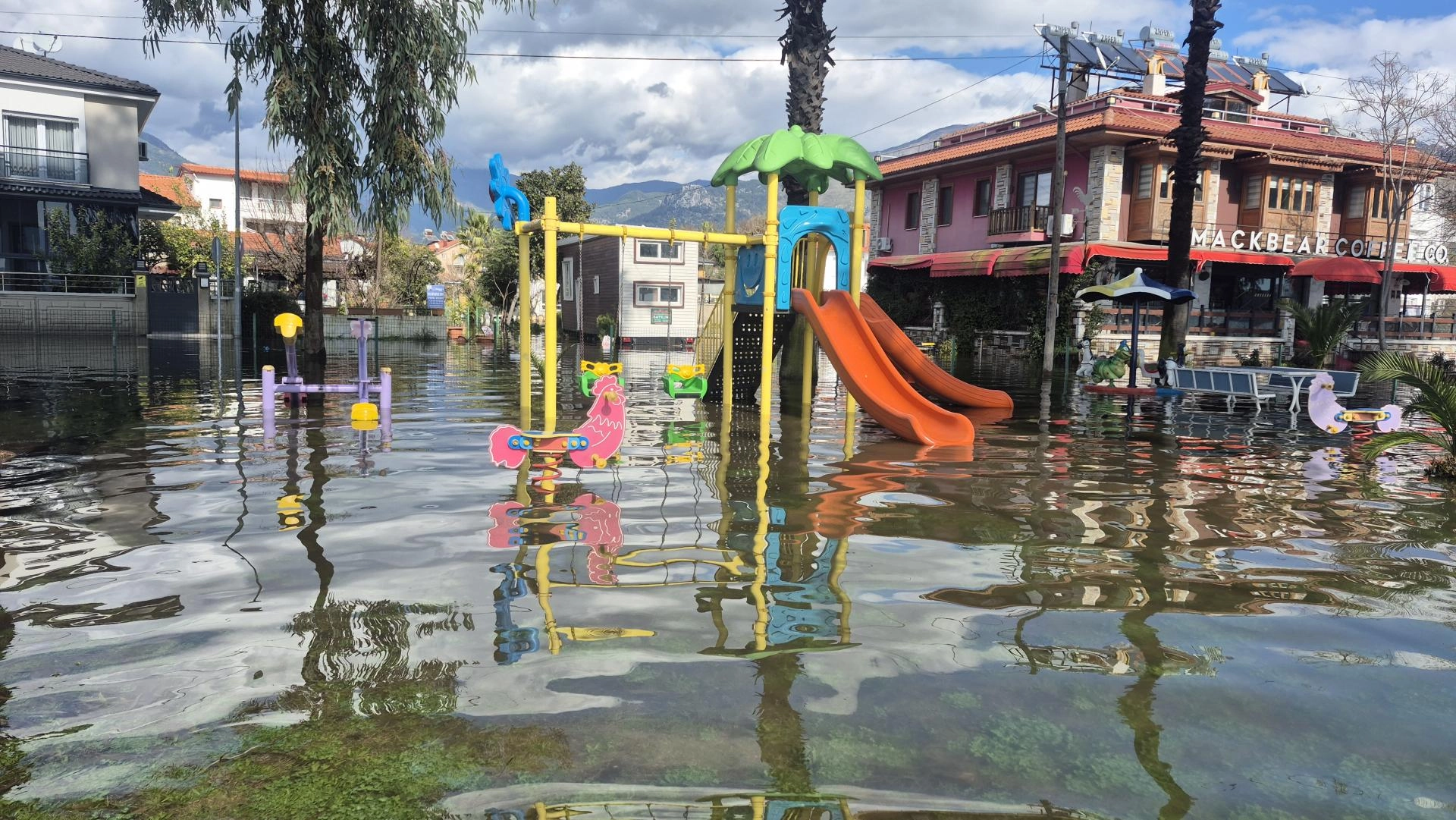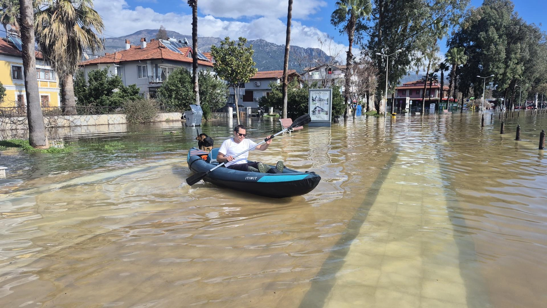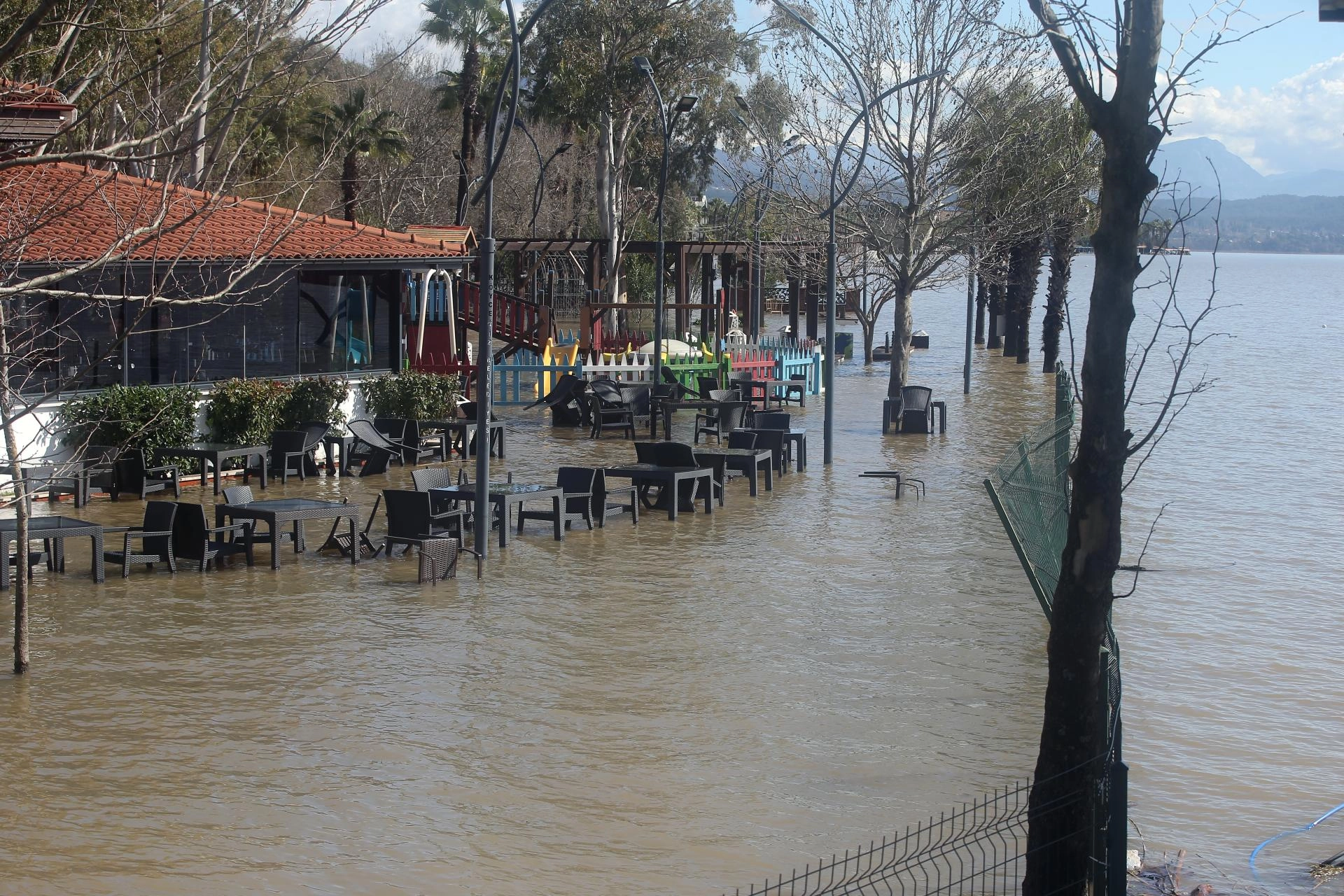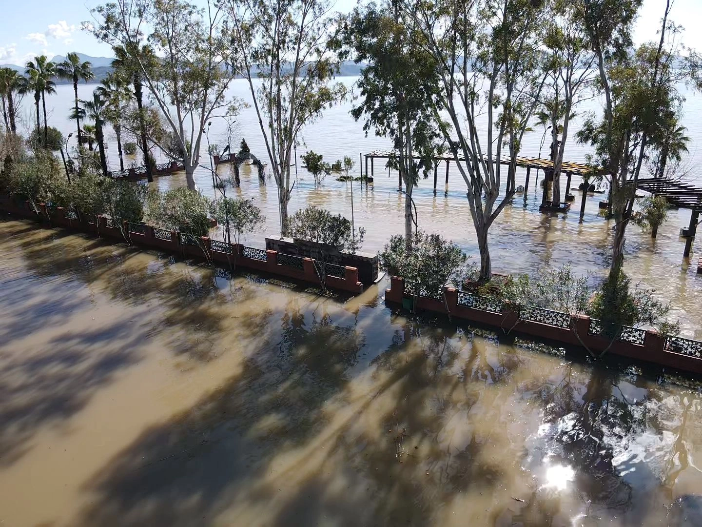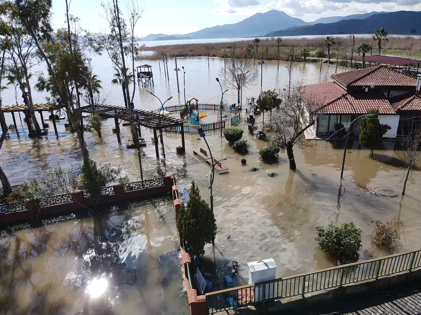 Öte yandan Köyceğiz Gölü'nde oluşan taşkın, su altında kalan işletmeler ve plajlar da AA ekibince dronla görüntülendi.