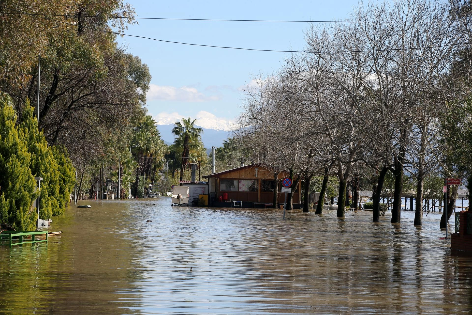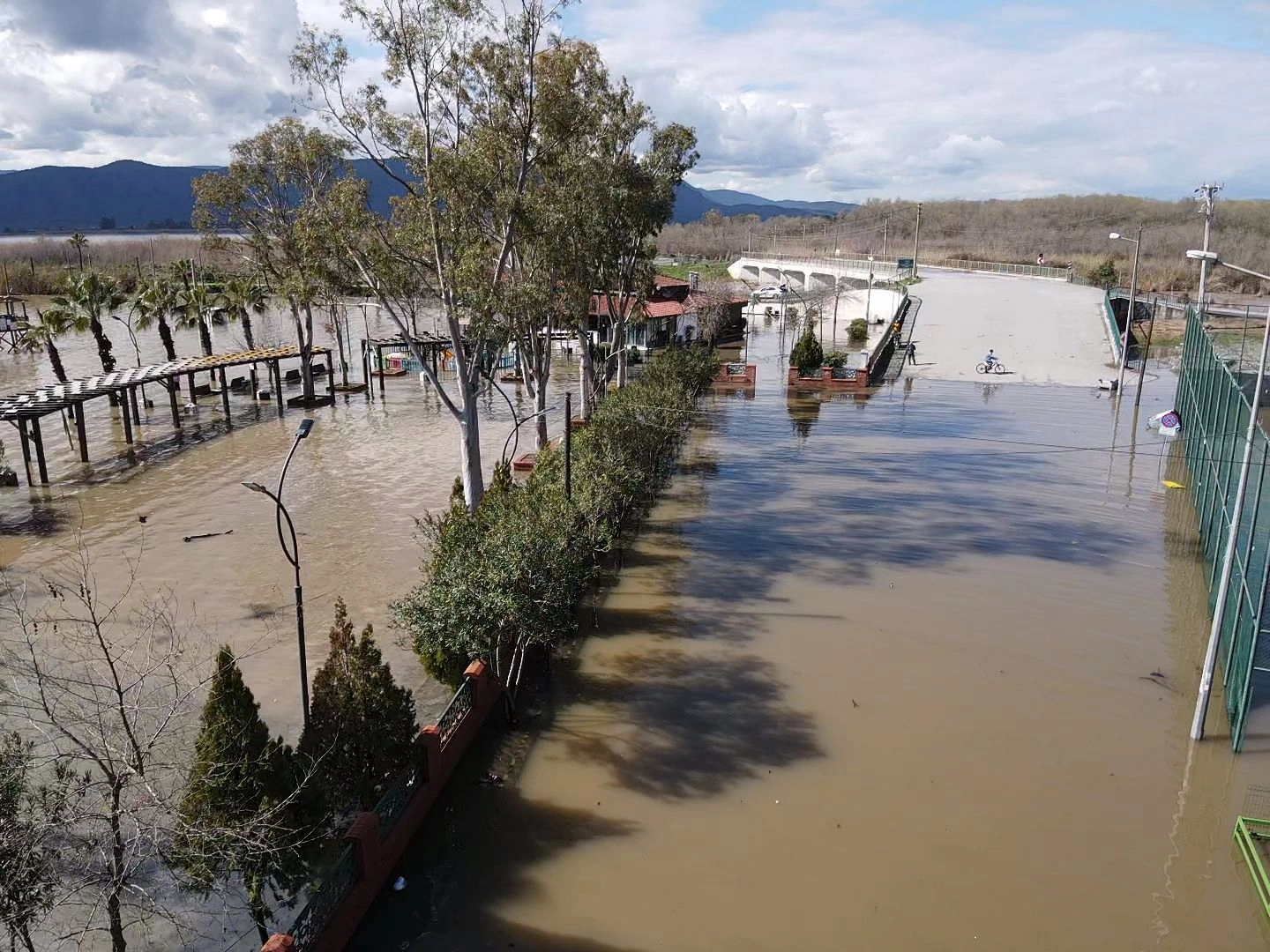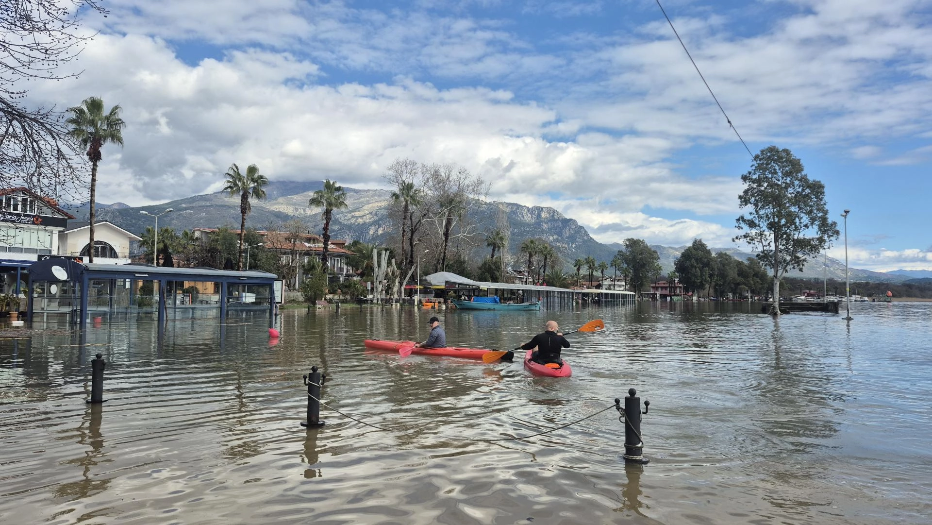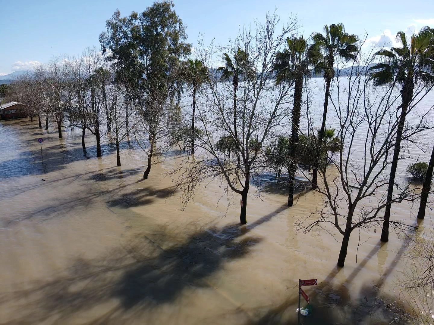 Öte yandan Köyceğiz Gölü'nde oluşan taşkın, su altında kalan işletmeler ve plajlar da AA ekibince dronla görüntülendi.