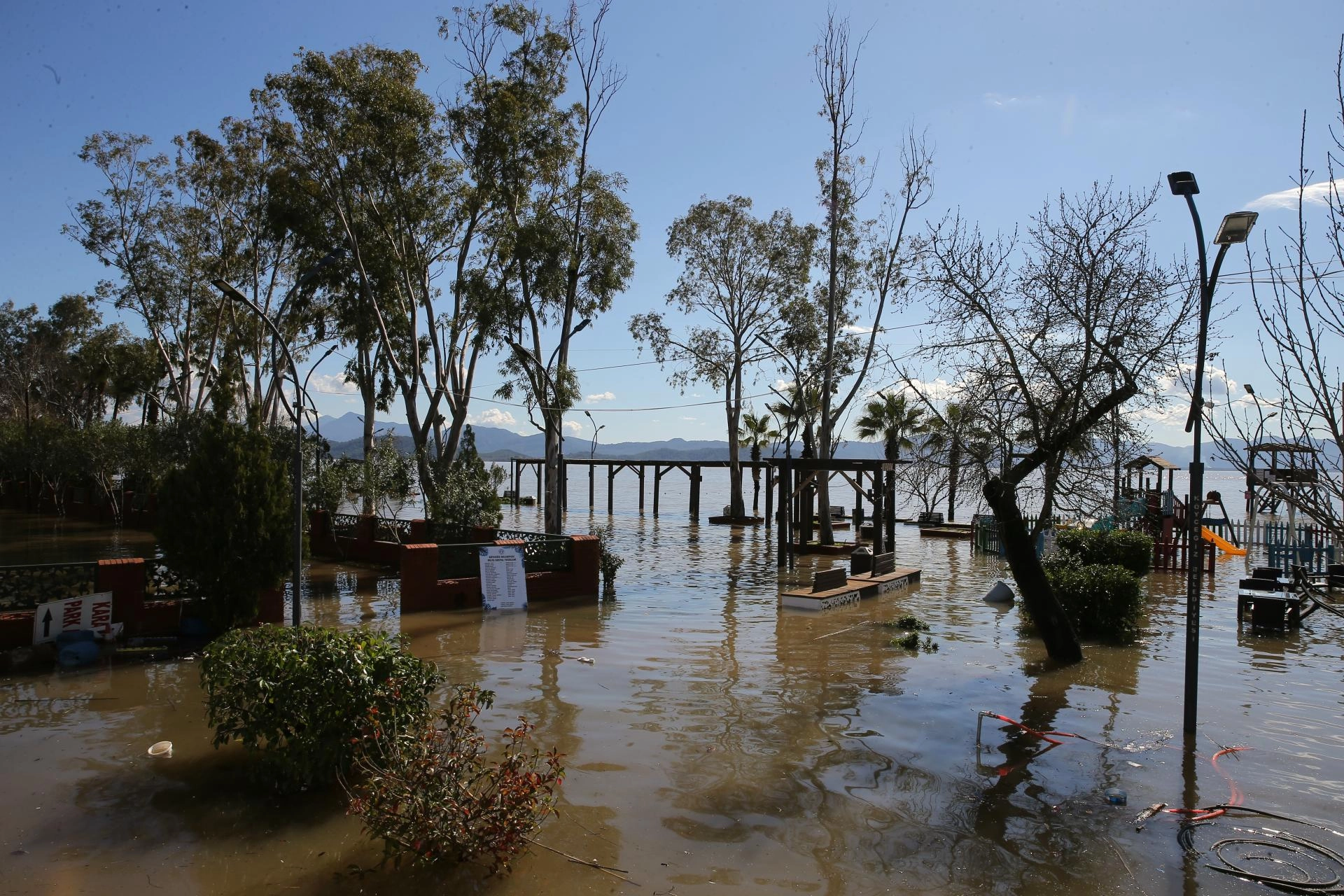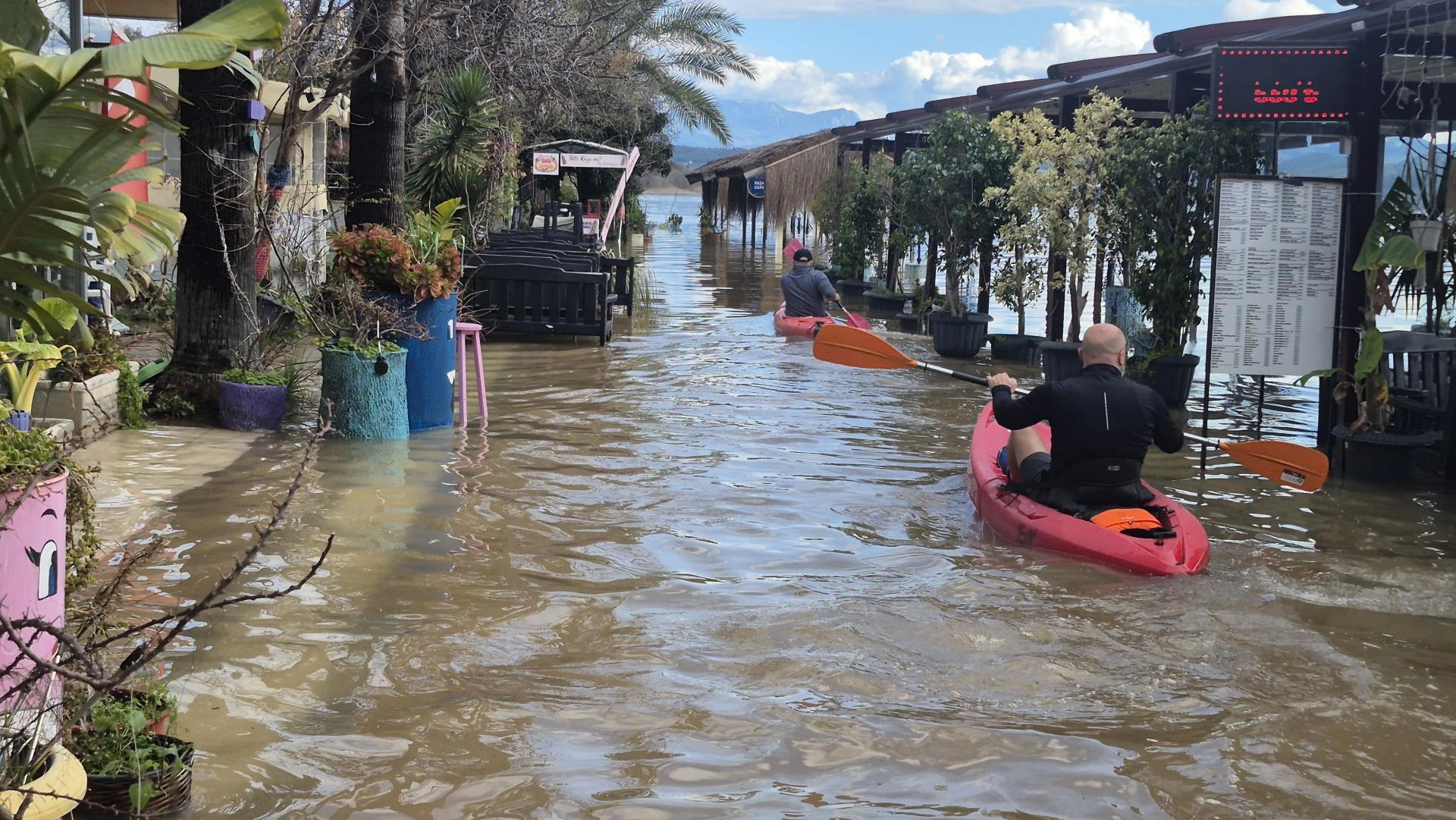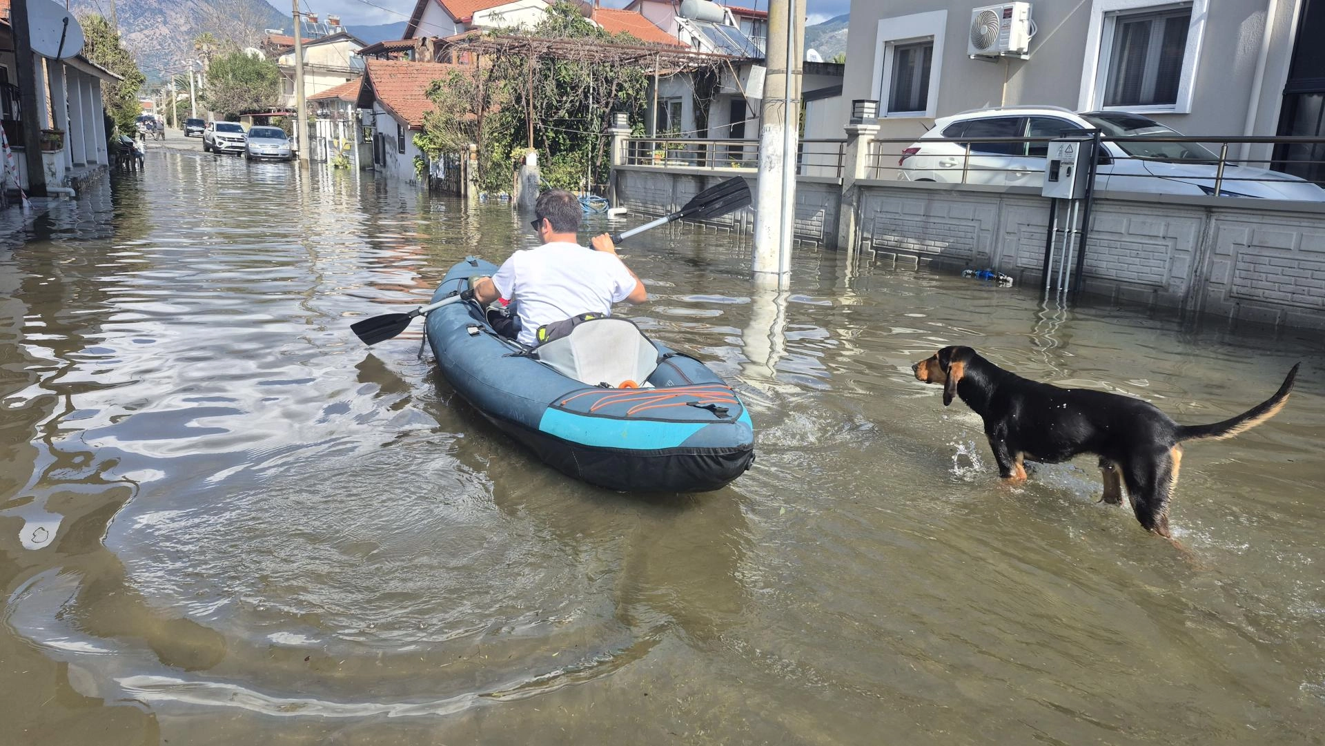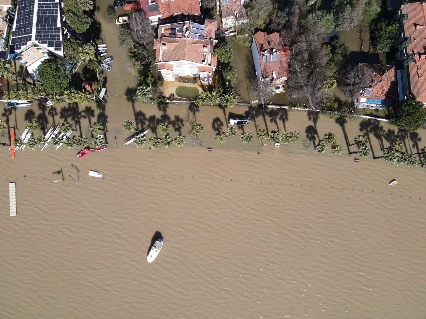 Öte yandan Köyceğiz Gölü'nde oluşan taşkın, su altında kalan işletmeler ve plajlar da AA ekibince dronla görüntülendi.