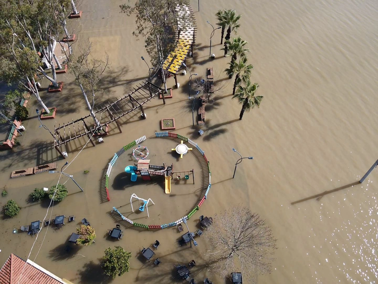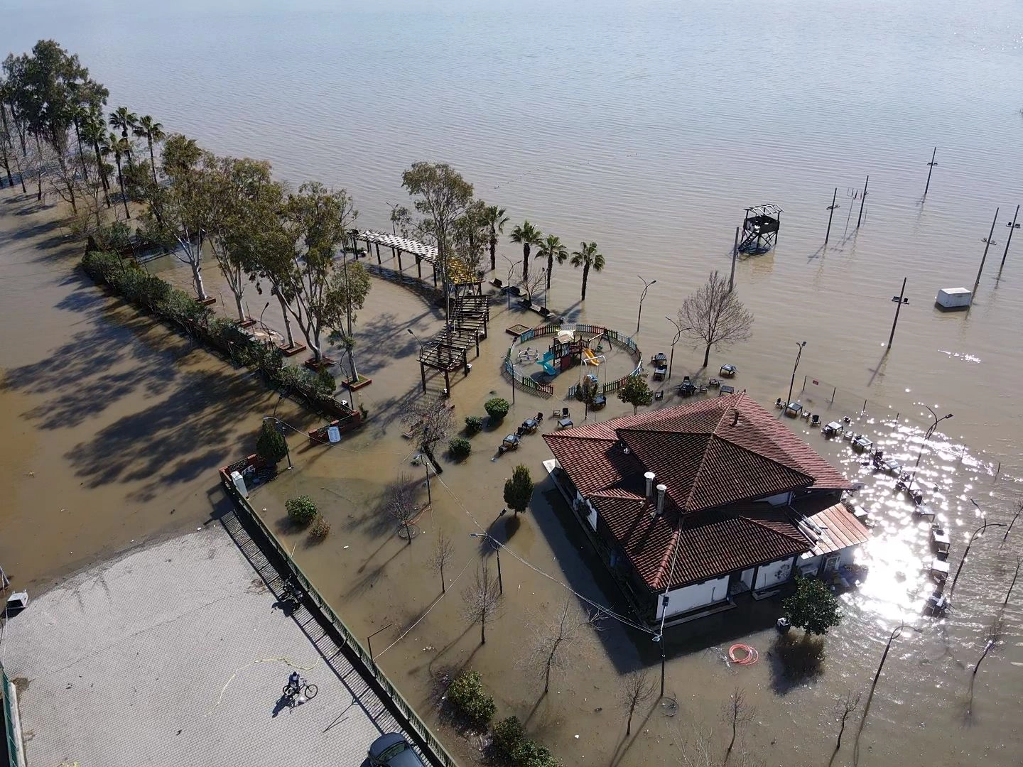 Göl kenarındaki birçok işletme ve oyun parklarının da sular altında kaldığı görüldü.