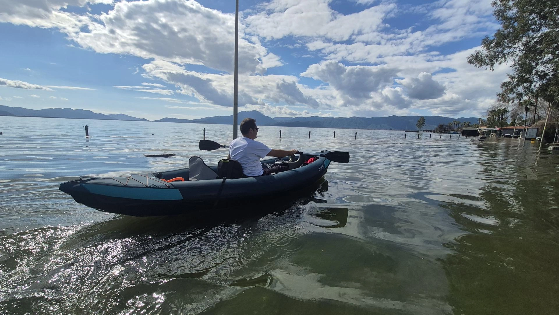 MUĞLA (AA) - Muğla'da bazı vatandaşlar, Köyceğiz Gölü'nün yükselmesi sonucu su altında kalan cadde ve sokaklarda kanolarla gezdi.