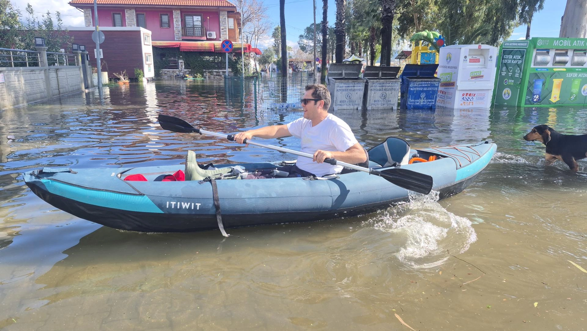 Bazı vatandaşlar, sokak aralarında ve kordonda kanolarla gezdi.