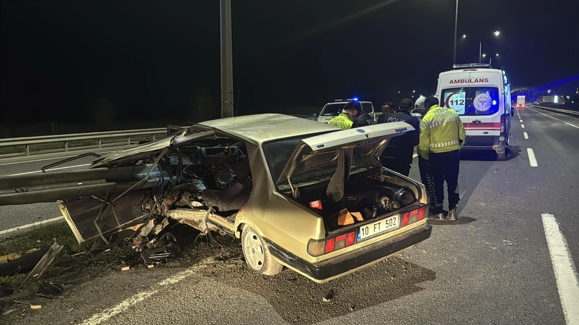 Çarpmanın etkisiyle çelik bariyer, otomobilin içine girdi. İhbar üzerine olay yerine sağlık ve polis ekipleri sevk edildi.