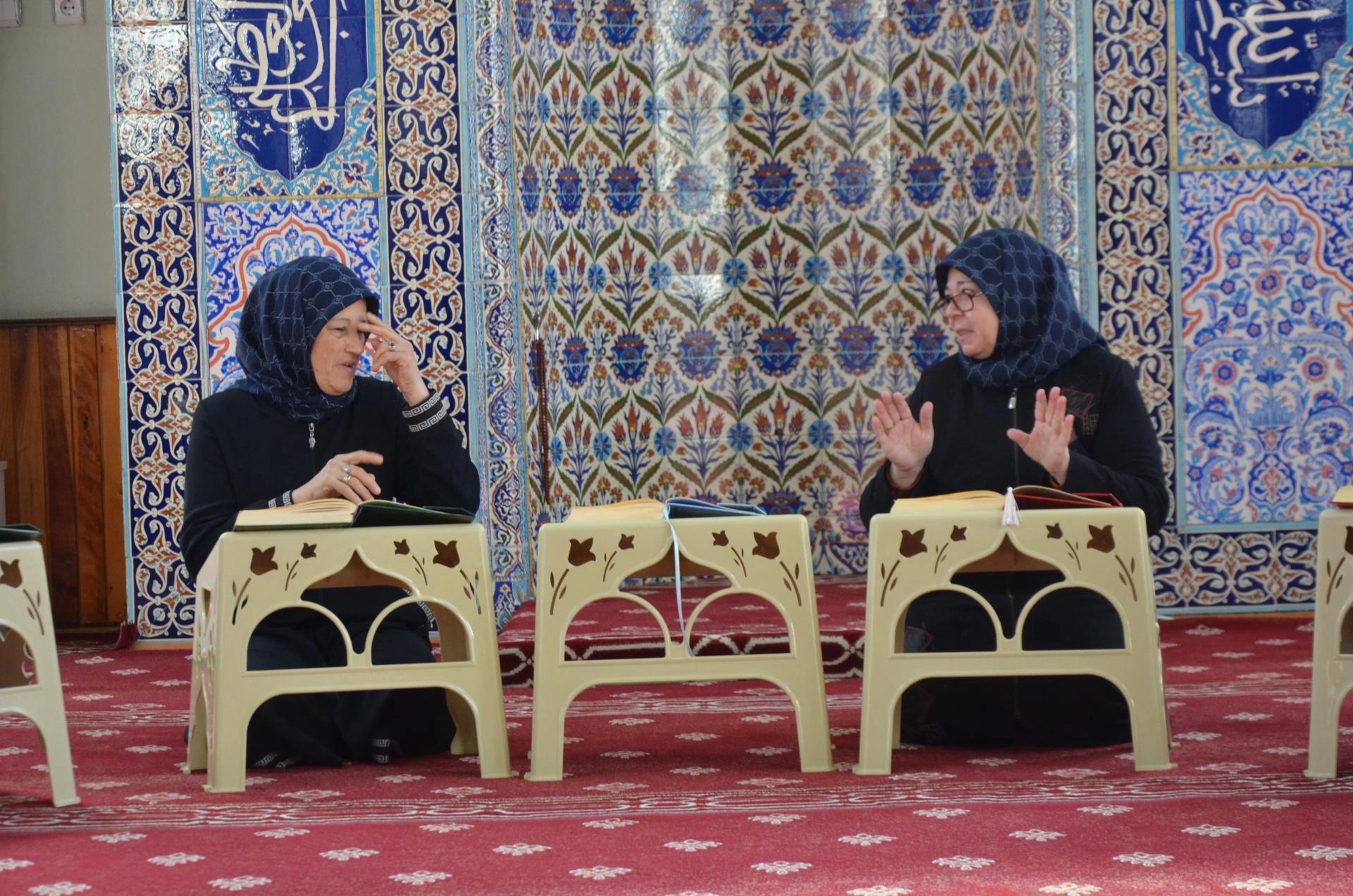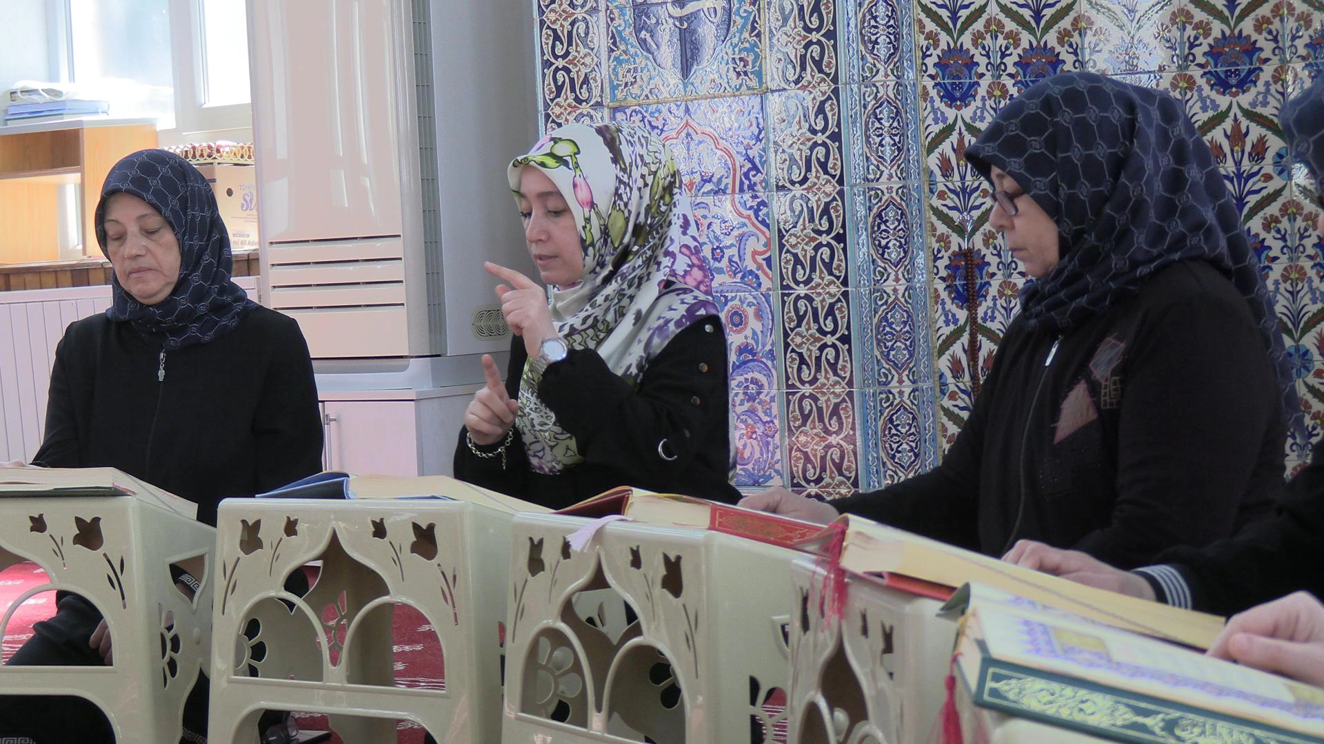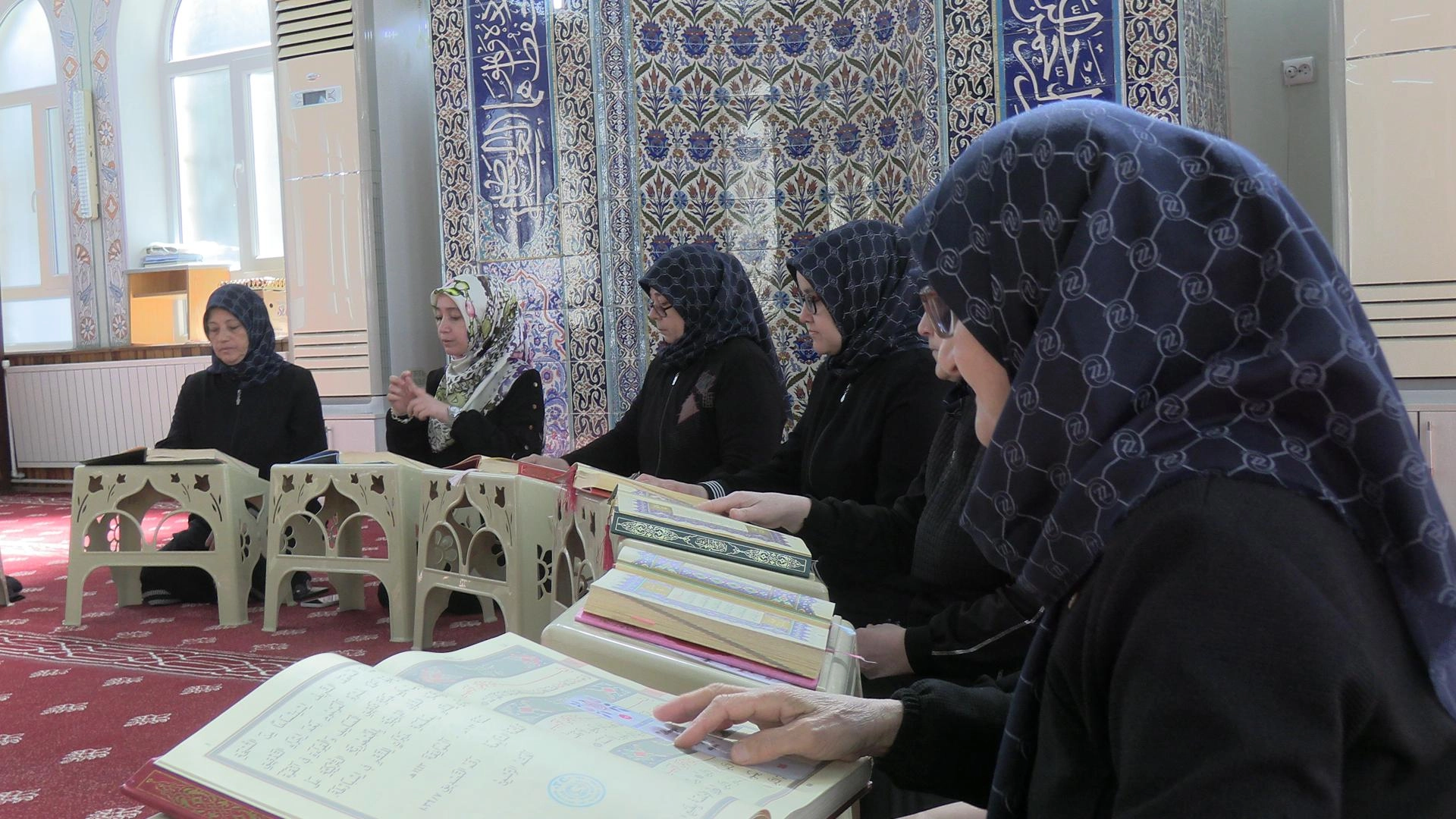 KÜTAHYA (AA) - Kütahya'da Tavşanlı İlçe Müftülüğüne bağlı Arslanbey Camisi İşitme ve Görme Engelliler Kur'an Kursu öğrencileri, Kur'an-ı Kerim'i işaret diliyle hatmetti.