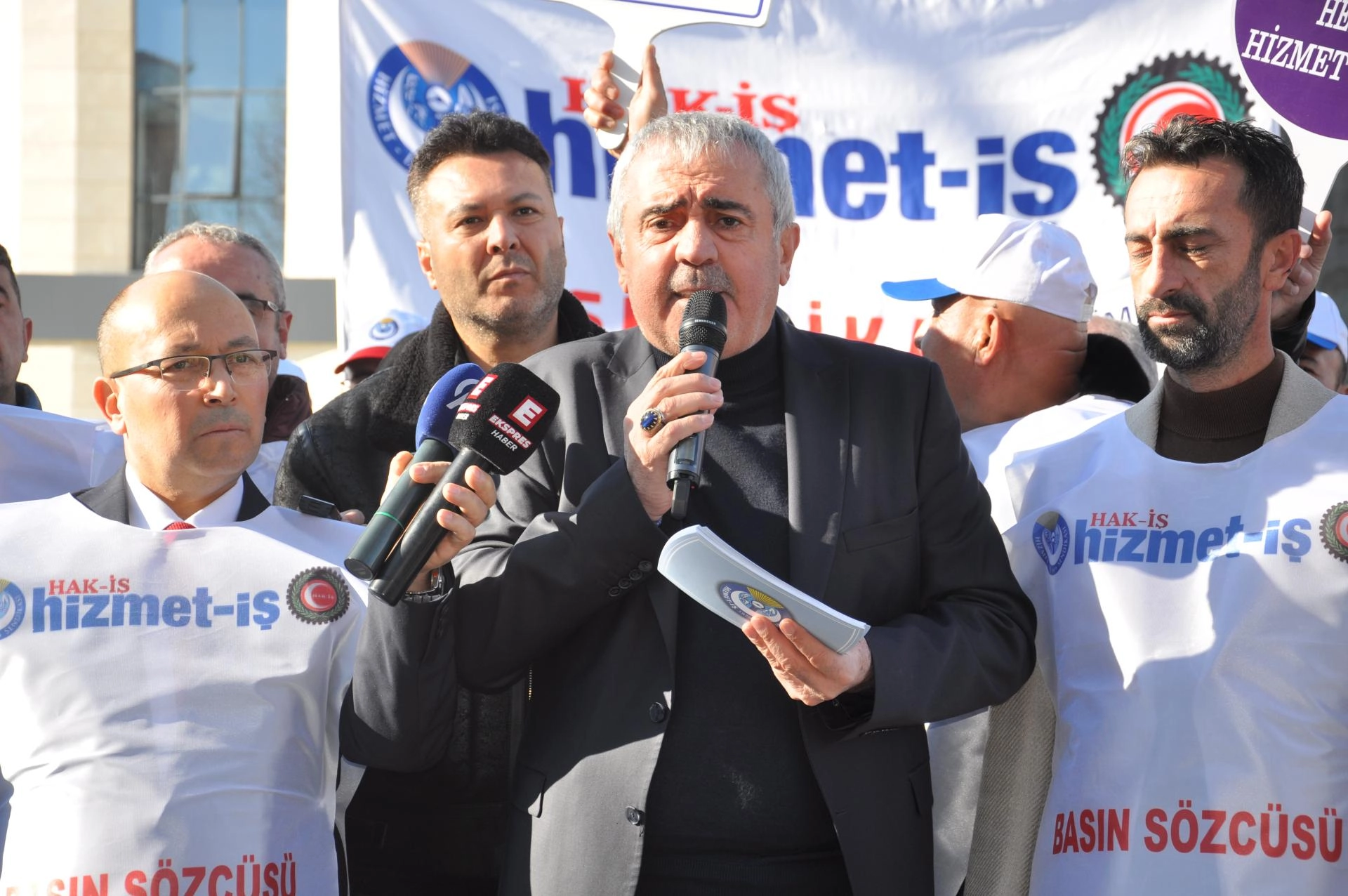 Kütahya Belediyesi hizmet binası önünde toplanan işçilere Hizmet-İş Sendikası Genel Başkan Vekili Halil Özdemir de destek verdi.