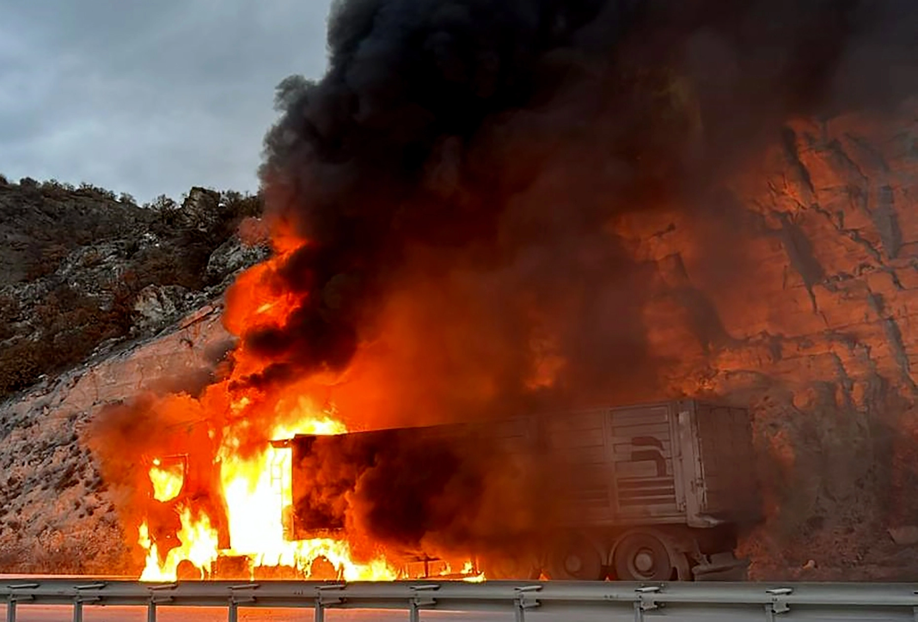 Bunun üzerine tırı emniyet şeridinde durduran sürücü, 112 Acil Çağrı Merkezi'ne haber verdi.