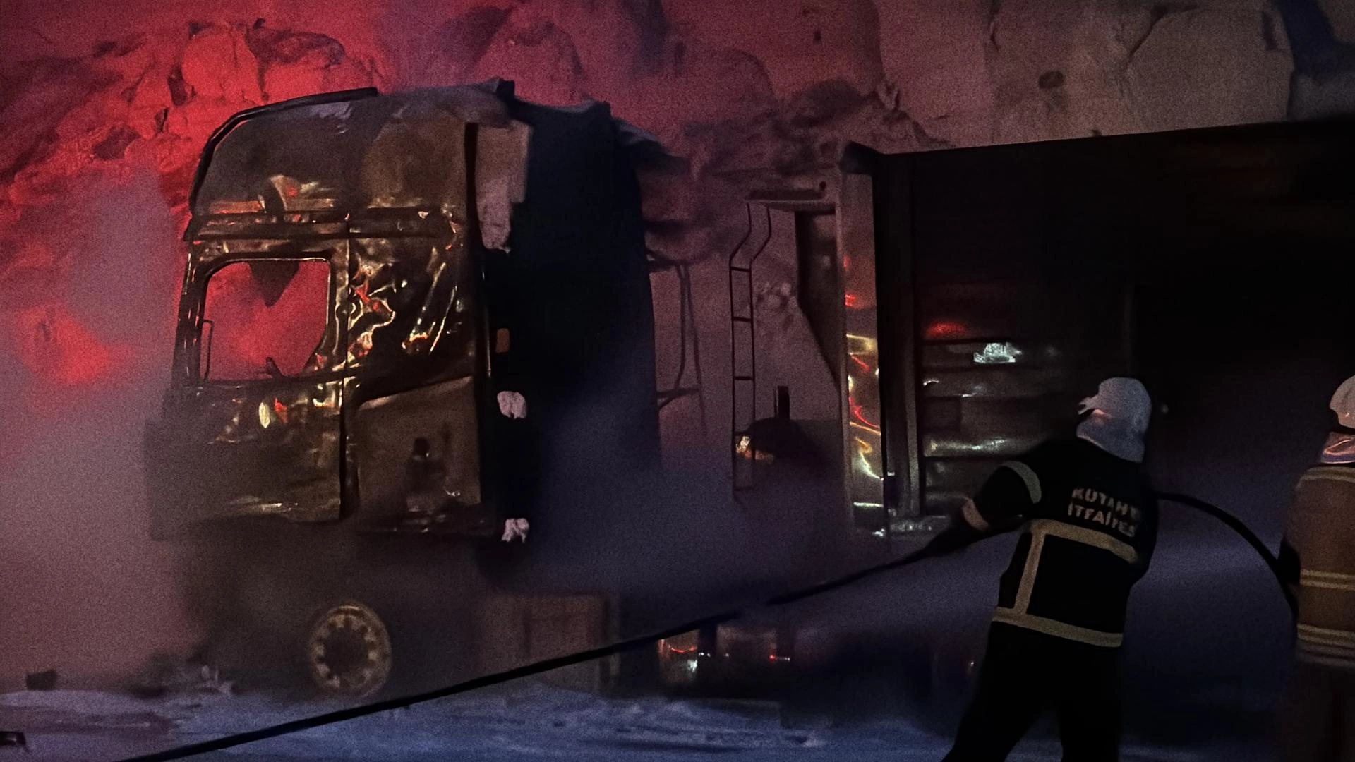 Tır sürücüsü Dolan, gazetecilere, Bursa'dan Kütahya'ya silis kumu taşıdığını, sürücülerin uyarması üzerine aracının yandığını fark ettiğini söyledi.