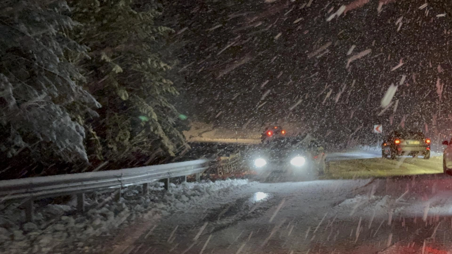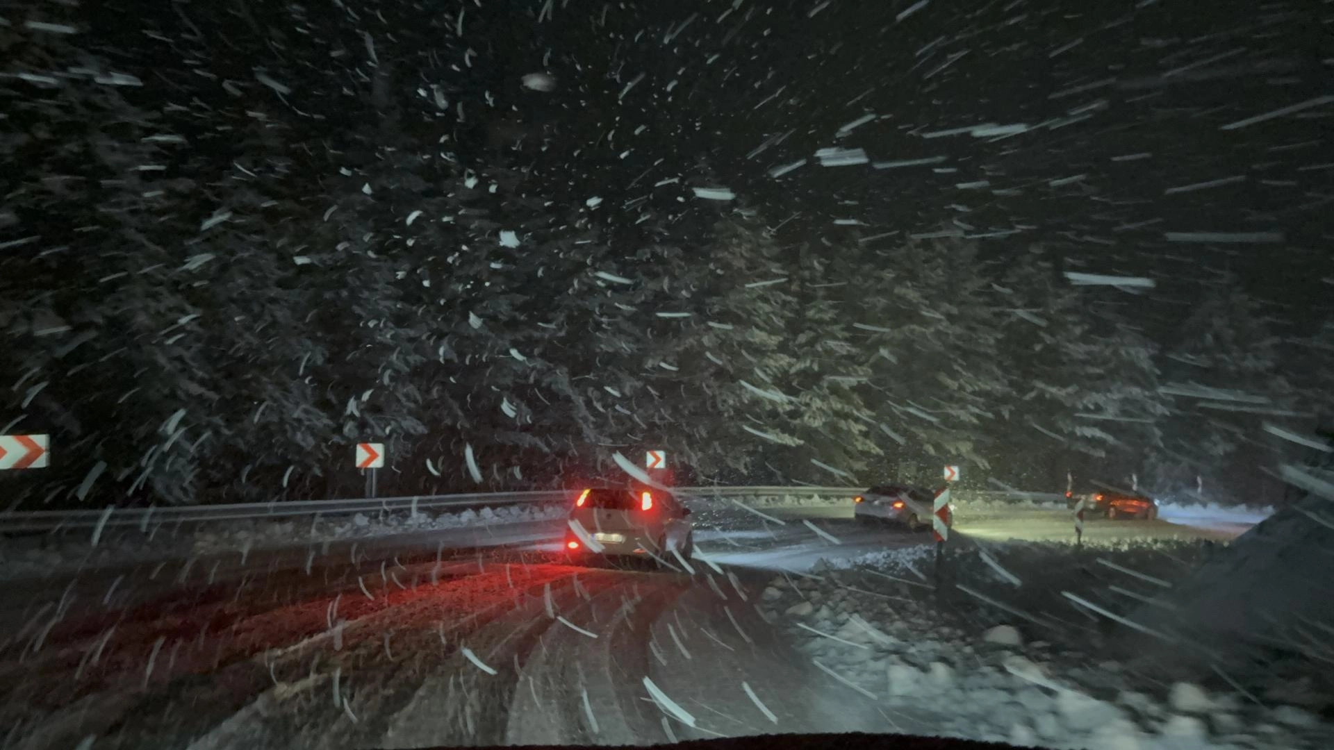 Yetkililer, sürücülerin kış lastiği ve zincir olmadan yola çıkmamaları, hız yapmamaları ve trafik işaretlerine uymaları konusunda uyarılarda bulunuyor.
