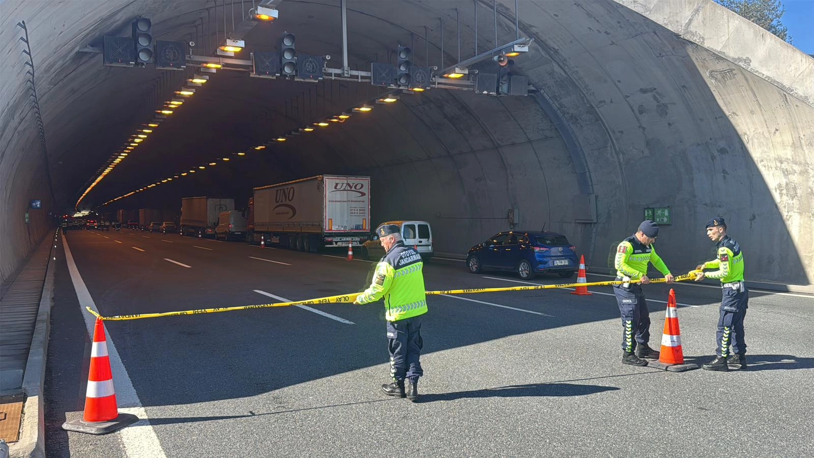 Kaza nedeniyle dört şeritli yolun üç şeridi trafiğe kapatılırken, bölgede uzun araç kuyrukları oluştu.