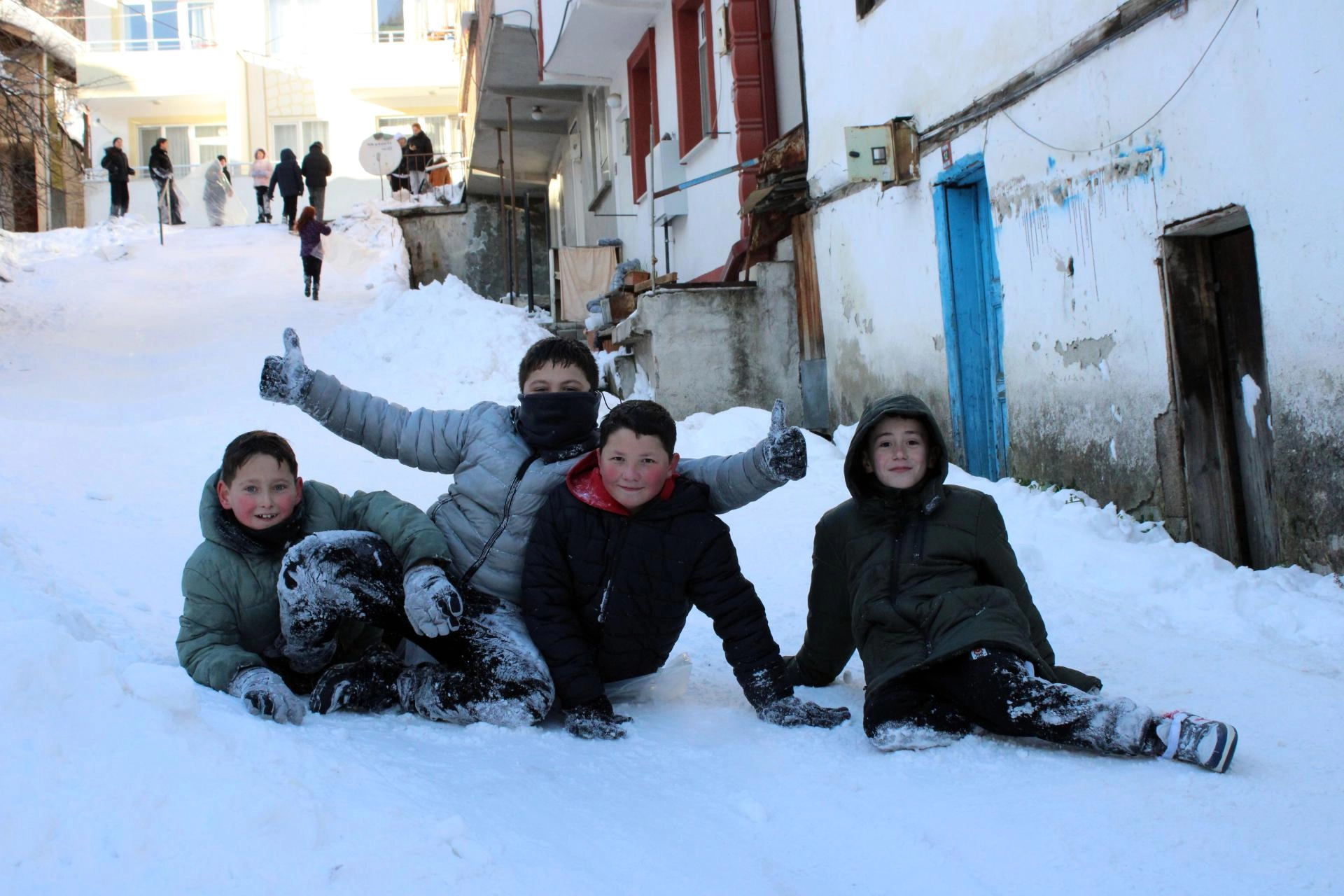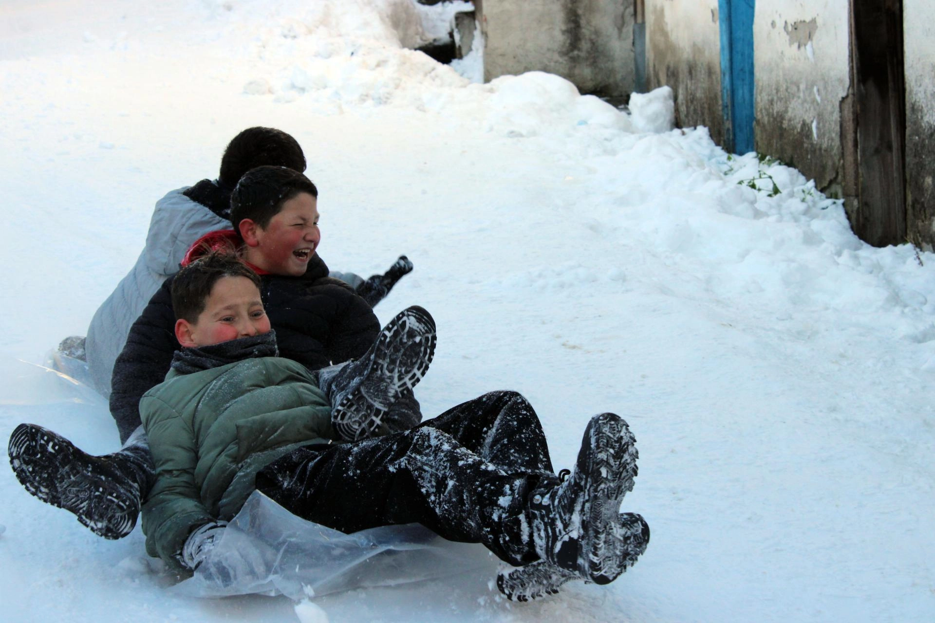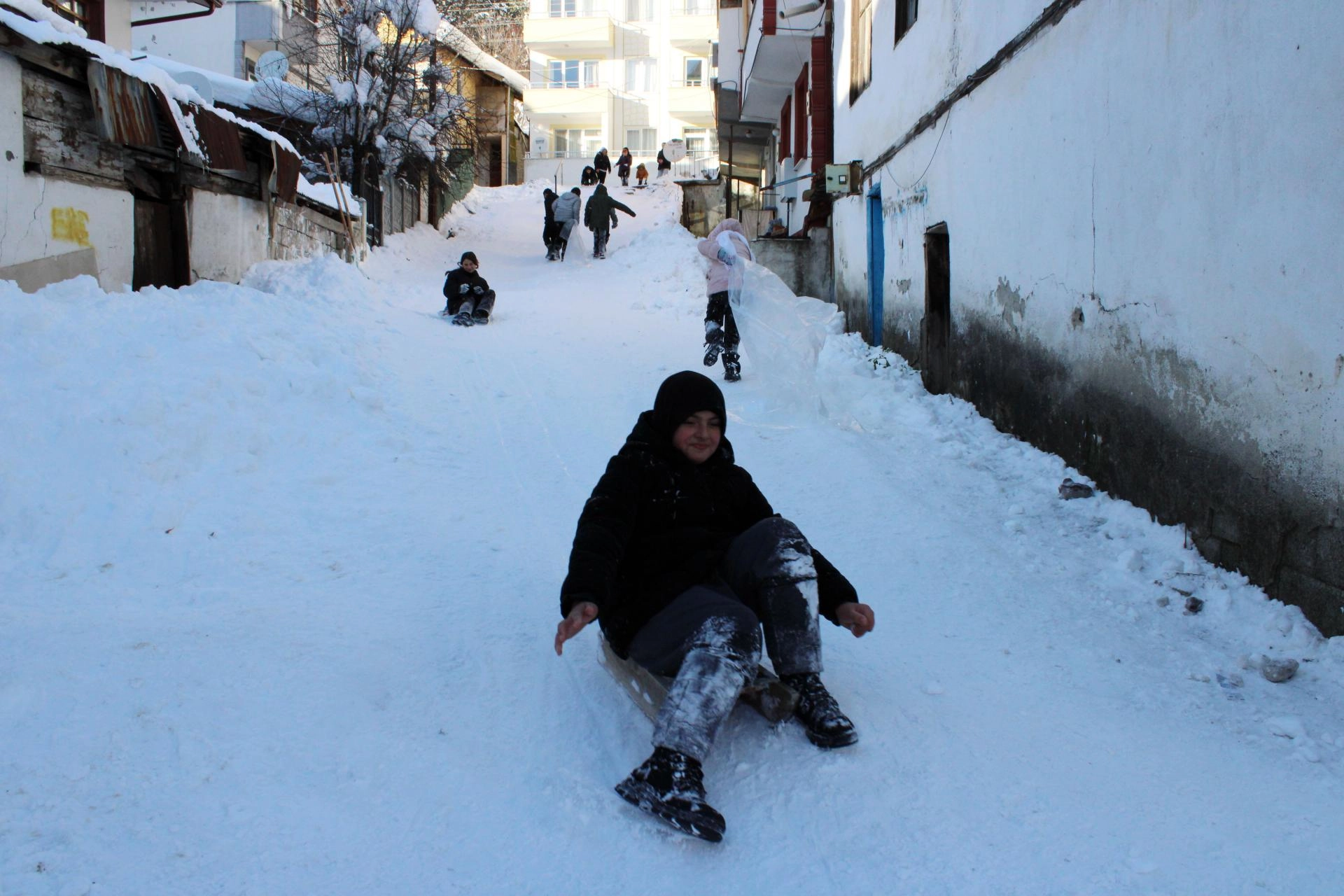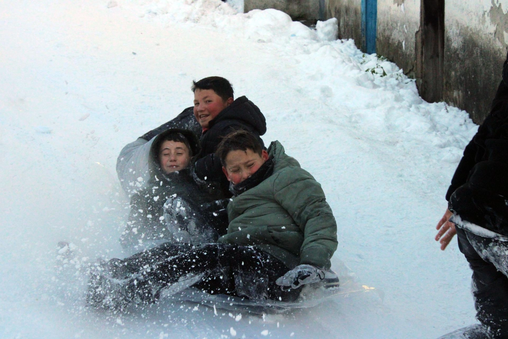 Çocuklardan Yasin Ege Akça, AA muhabirine, bir arkadaşının sokağı kayak pistine çevirmeye çalıştığını görünce ona yardım ettiğini belirterek, "Burayı düzeltip kayabilecek duruma getirdik. Çukurlar vardı, düzelttik. Yukarıdan kar attık yerlere. Üstüne kuvvet uygulayıp kaya kaya düzledik. Şimdi eğleniyoruz, kayıyoruz, mutluyuz." dedi.