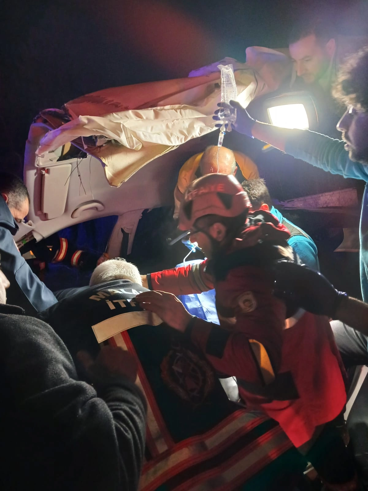 Kazaya 3 ekiple müdahale eden itfaiye ekipleri, araçta sıkışan sürücü M.D'yi kurtardı.