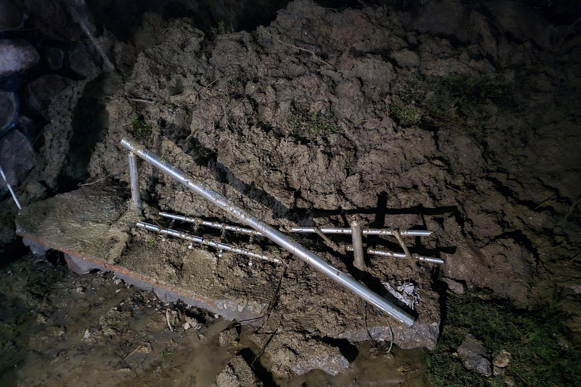 Kayan toprak ve üzerindeki zeytin ağaçları, sitenin yaklaşık 7 metre uzunluğundaki istinat duvarını yıkarak apartman dairesinde hasara neden oldu.