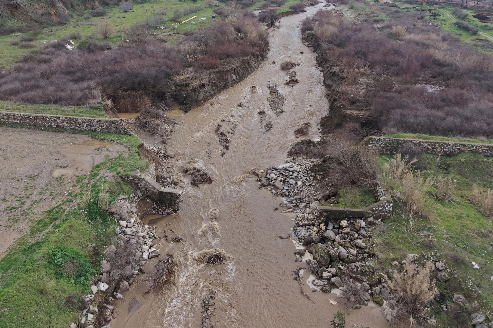 MANİSA (AA) - Manisa'nın Turgutlu ilçesinde, Irlamaz Çayı üzerine inşa edilen taşkın kontrol ve dere ıslah tesisi, son günlerde etkili olan aşırı yağışlar nedeniyle yıkıldı.