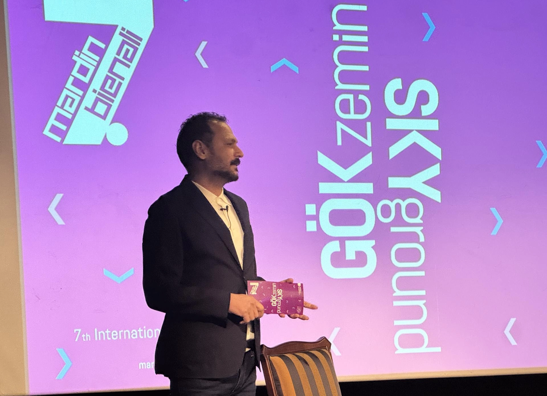 Küratör Çelenk Bafra, bienalin bu yılki başlığının "GÖKzemin" olarak belirlendiğini aktararak, "Başlık, günümüz sanatının gerçek ile hayal, maddi ile manevi, politik ile poetik arasında kurduğu ilişkileri Mardin bağlamında görünüyor kılıyor. Gök ile yer, bireysel ile kolektif, geçmiş ile gelecek arasında, düşünce ve duygu hattı kuran bienal, izleyiciyi birbirine tezat görünen uçlar arasında bir yolculuğa davet ediyor." diye konuştu.