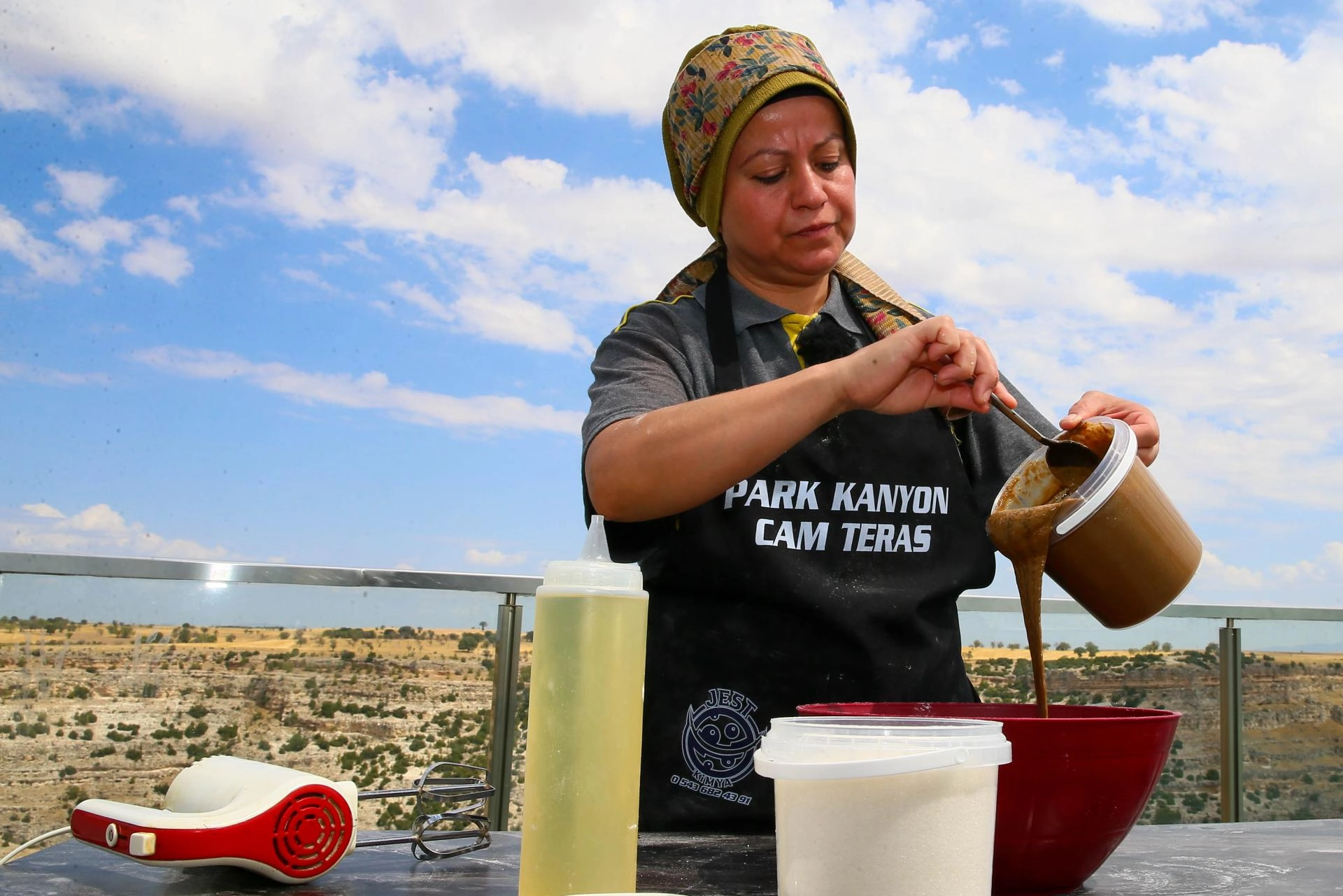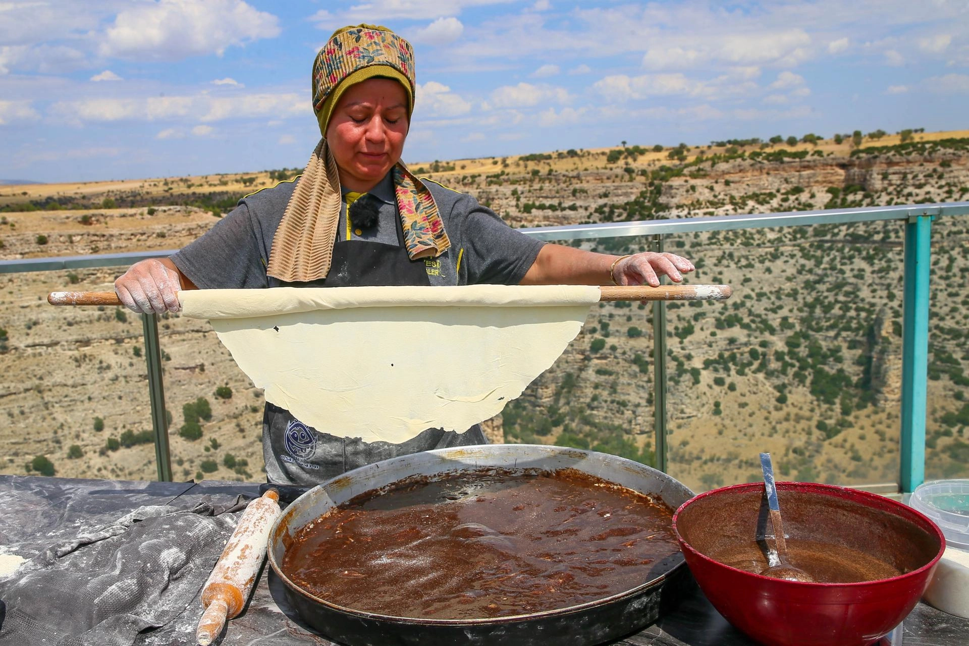 Tatlının şerbetsiz yapıldığını vurgulayan Çoruk, lezzetini içindeki toz şeker, haşhaş ve susam ezmesinden aldığını belirtti.