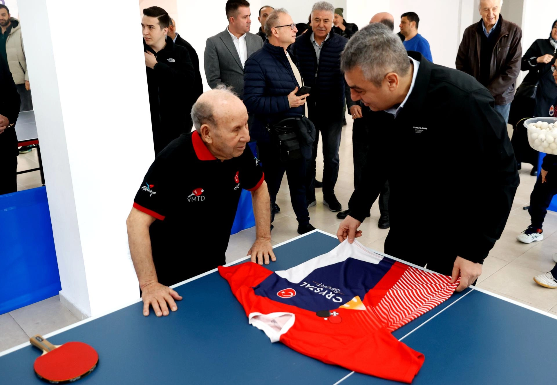 Daha sonra Toros ve Yaşar ile gösteri maçı yapan Özer için masa tenisi eğitim alanında sürpriz gerçekleştirildi.