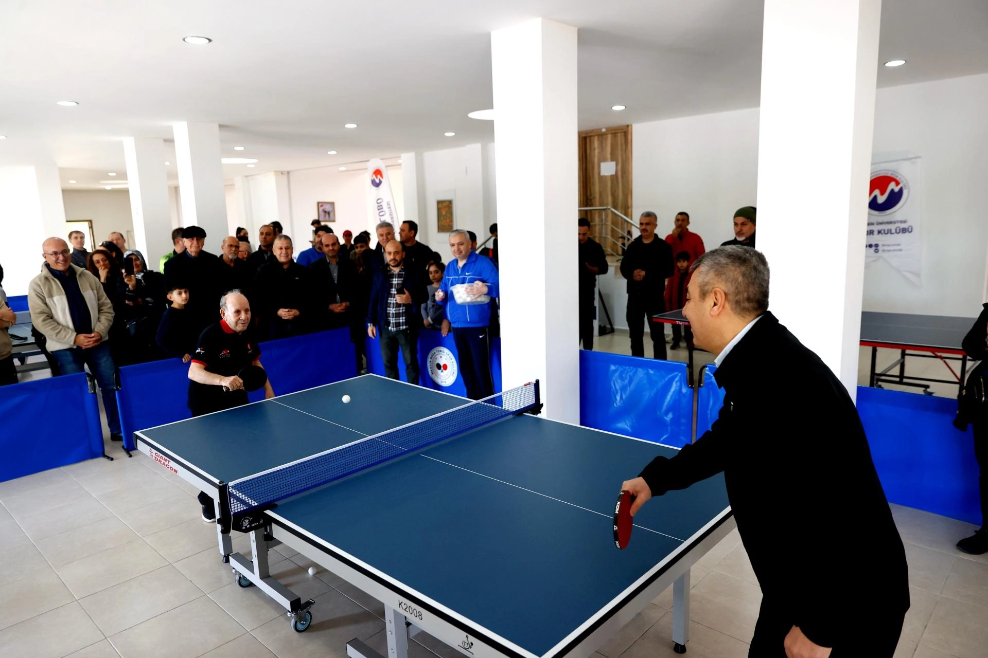 Programda Özer, Vali Toros ve MEÜ Rektörü Prof. Dr. Erol Yaşar'a 1950 yılında masa tenisine başladığını, ulusal ve uluslararası birçok madalyasının bulunduğunu anlattı.