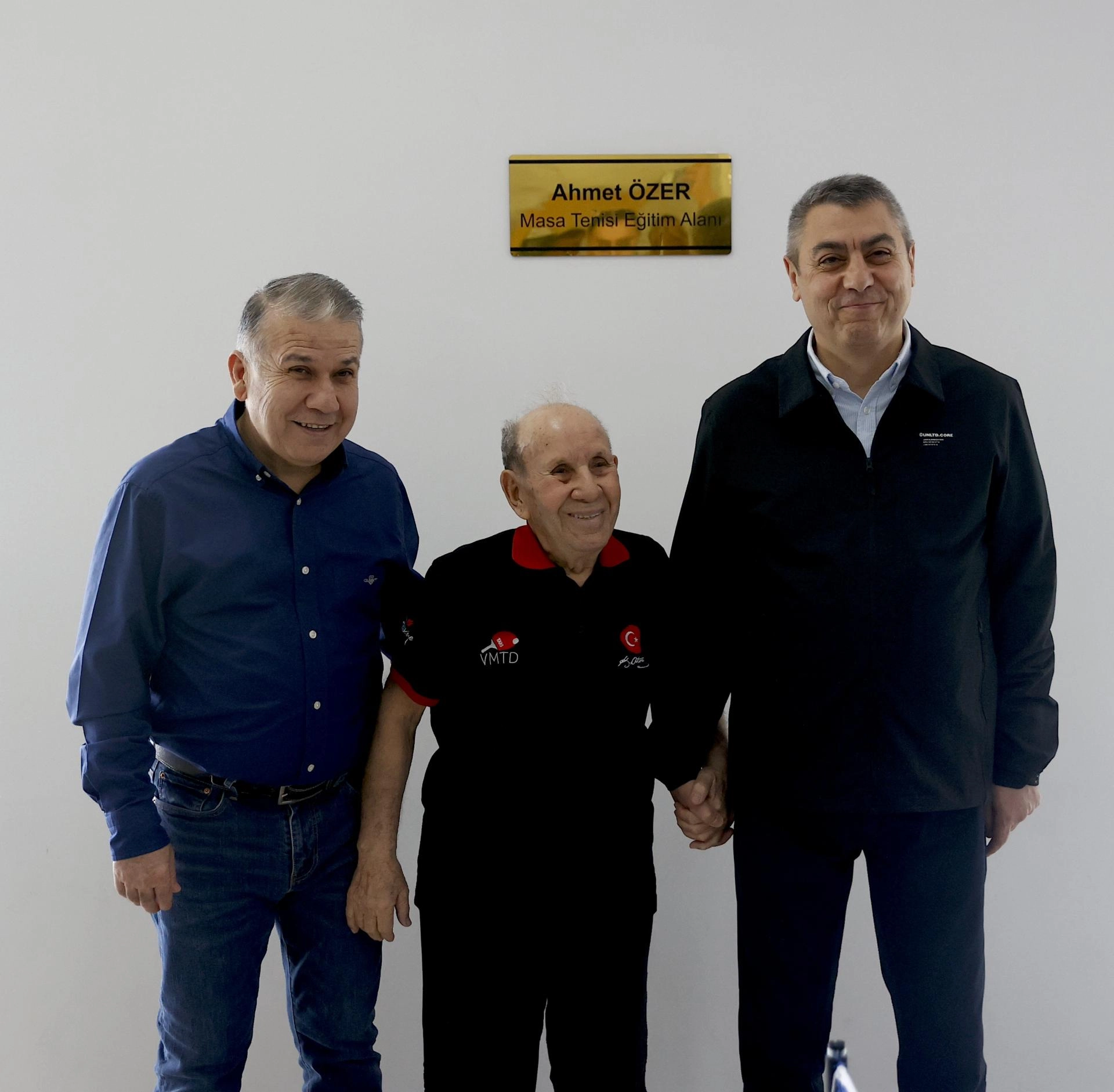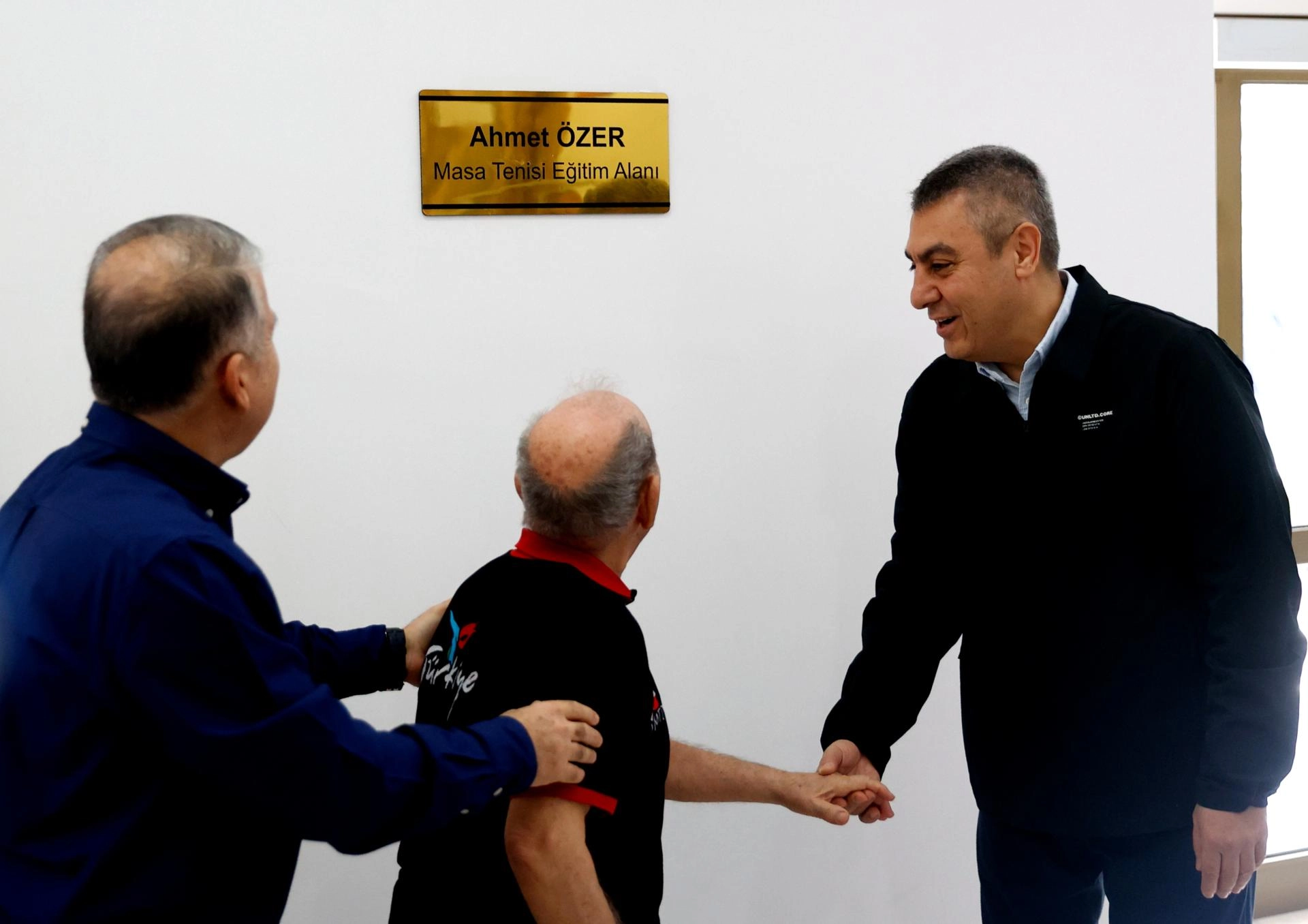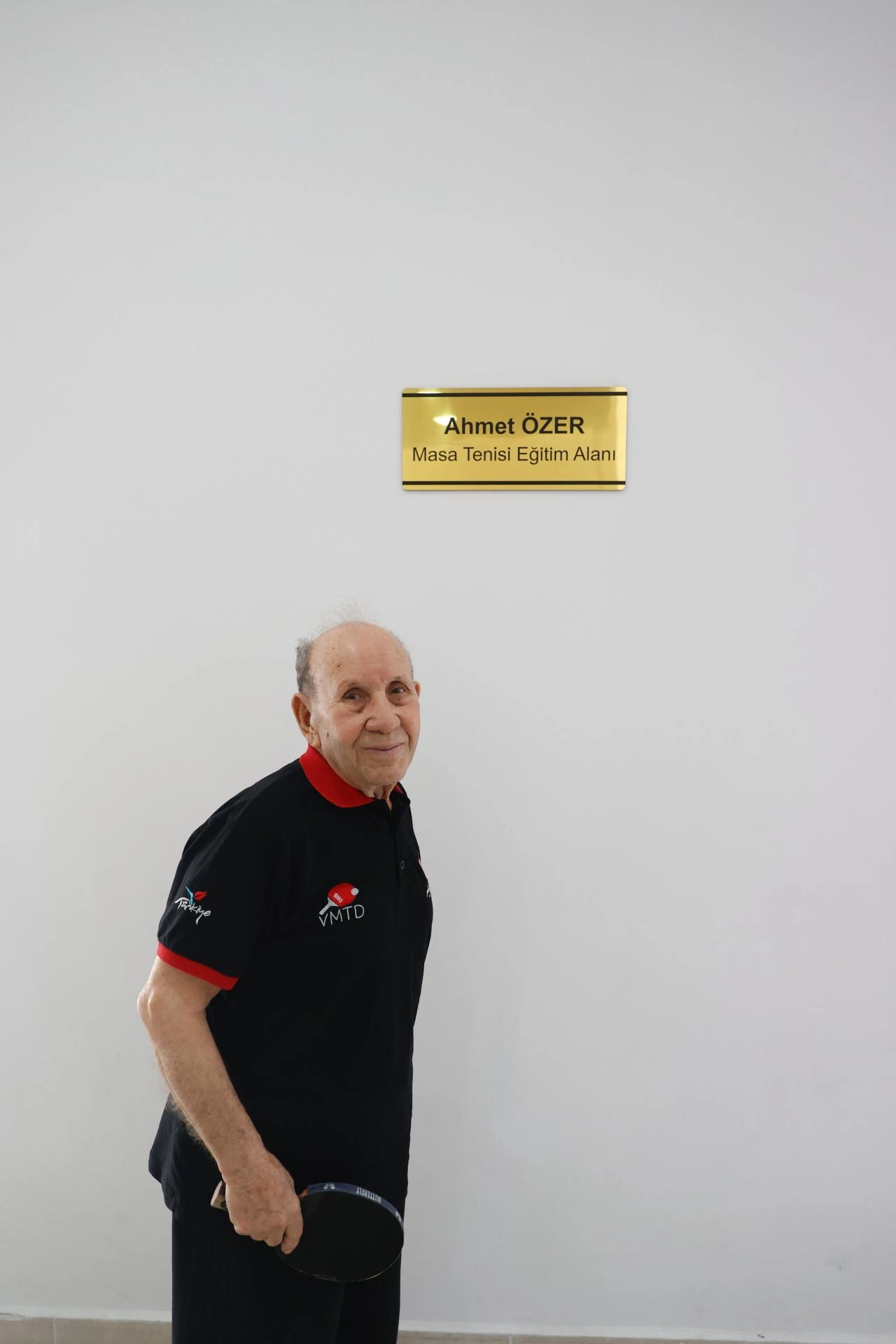 MERSİN (AA) - Mersin'de, spor alanında farkındalık oluşturup gençlere örnek olan veteran masa tenisçi 88 yaşındaki Ahmet Özer'in adı Mersin Üniversitesi (MEÜ) Spor Salonu'ndaki eğitim alanına verildi.