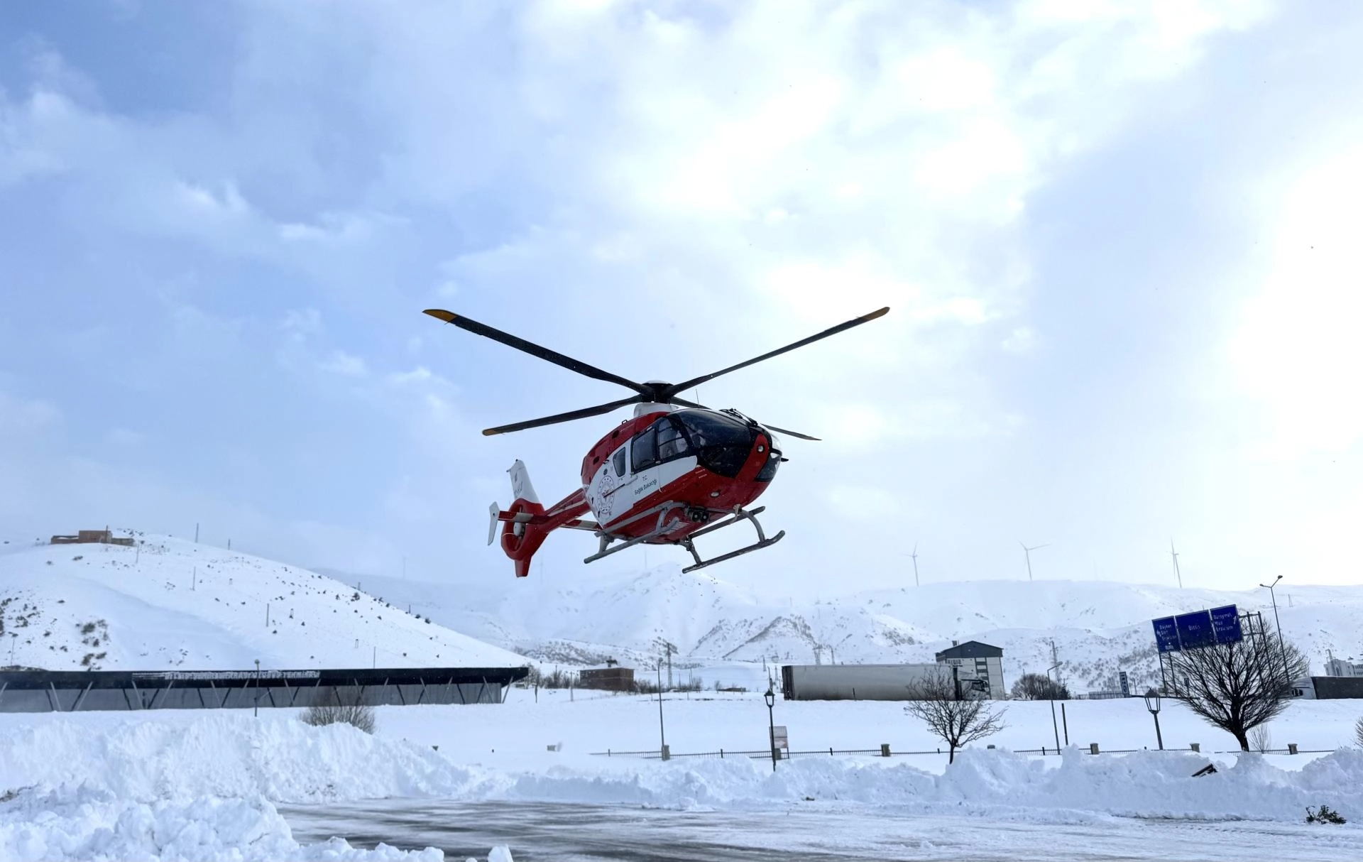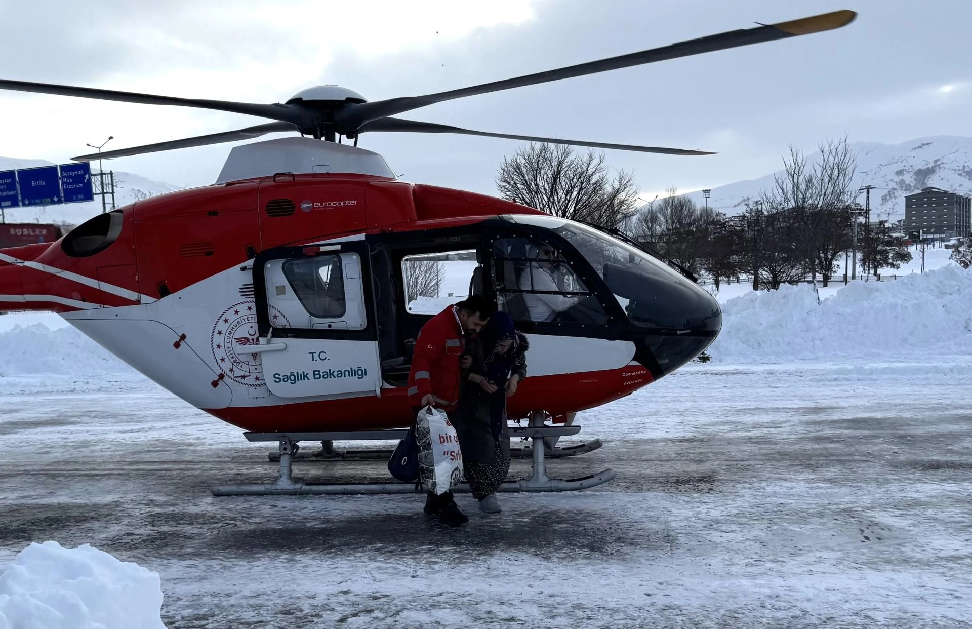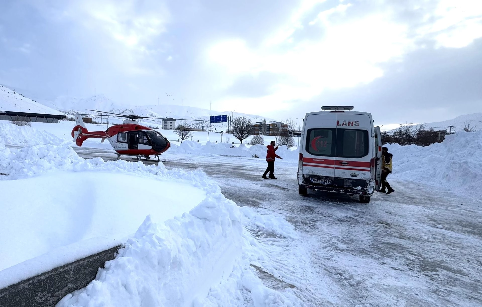 BİTLİS (AA) - Bitlis'te yolu kardan kapanan mezrada mahsur kalan anne ve yenidoğan bebeği ambulans helikopterle hastaneye ulaştırıldı.