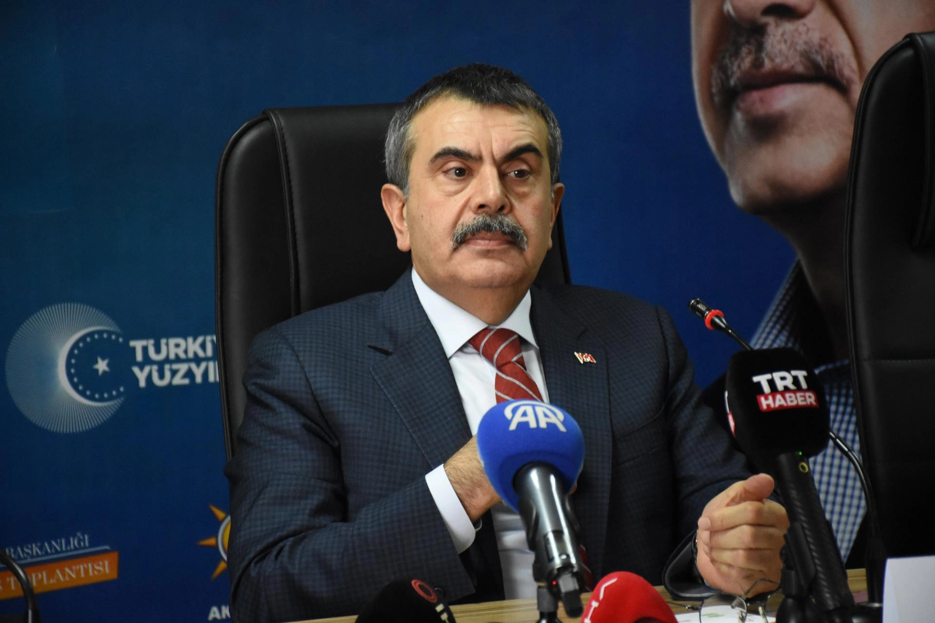 "2002'de dönemin Başbakanı Bülent Ecevit, 'Cumhuriyet'in Yüzüncü Yılına Mektuplar' projesi başlatıyor. 2023'te o mektuplar PTT aracılığıyla bana geldi. Öğretmenlerimiz, 'İnşallah Cumhuriyet'in 100. yılında 45-50 kişilik sınıflarda ders anlatabilirim, çocuklarımız tuvalet ihtiyacını gidermek için okulun dışına çıkmak zorunda kalmazlar, okulumuzda bir tane bilgisayar olur.' yazmış. Çok eski değil, 2002'de yazılmış bu mektuplar. Şu an 650 bin dersliğimizin tamamında internet erişimi sağlanan akıllı tahtalar var. Birleşmiş Milletler'in raporunda, dünyada neredeyse bütün sınıflarında etkileşimli tahta olan tek ülke Türkiye diyor. Bu ülkenin çocukları kara tahtalara, 80 kişilik sınıflara, tuvaleti olmayan okullara mahkum olmamalı dedik ve gerçekten çok güzel okullar yaptık."