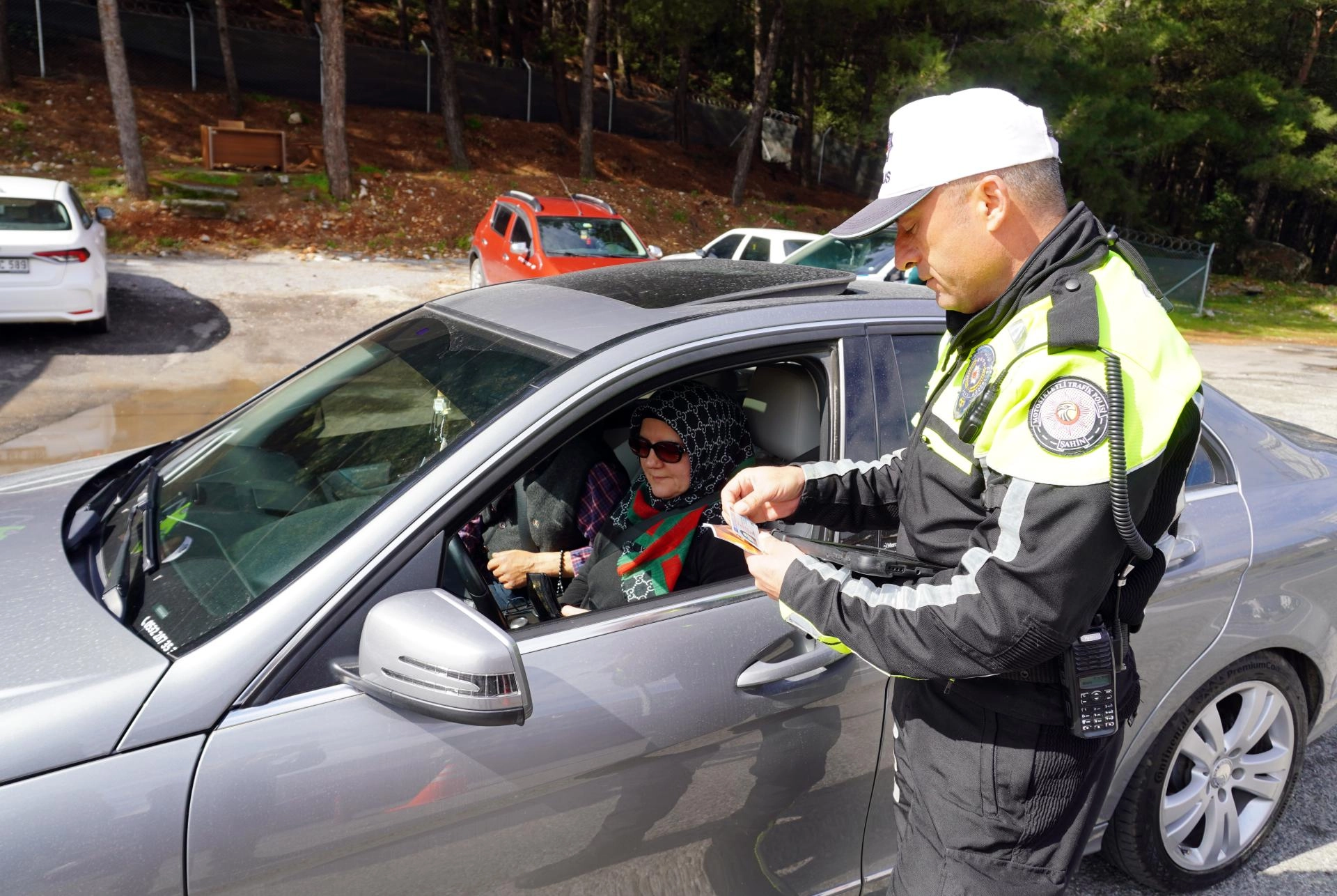 Muğla Emniyet Müdürlüğü Trafik Tescil ve Denetleme Şubesi ekipleri, Menteşe ilçesi Aydın giriş noktasındaki kontrollerde, sürücülere trafik kurallarıyla ilgili bilgilendirmede bulunarak, "Bayram Sensiz Olmaz" sloganıyla hazırlanan broşürleri dağıttı.