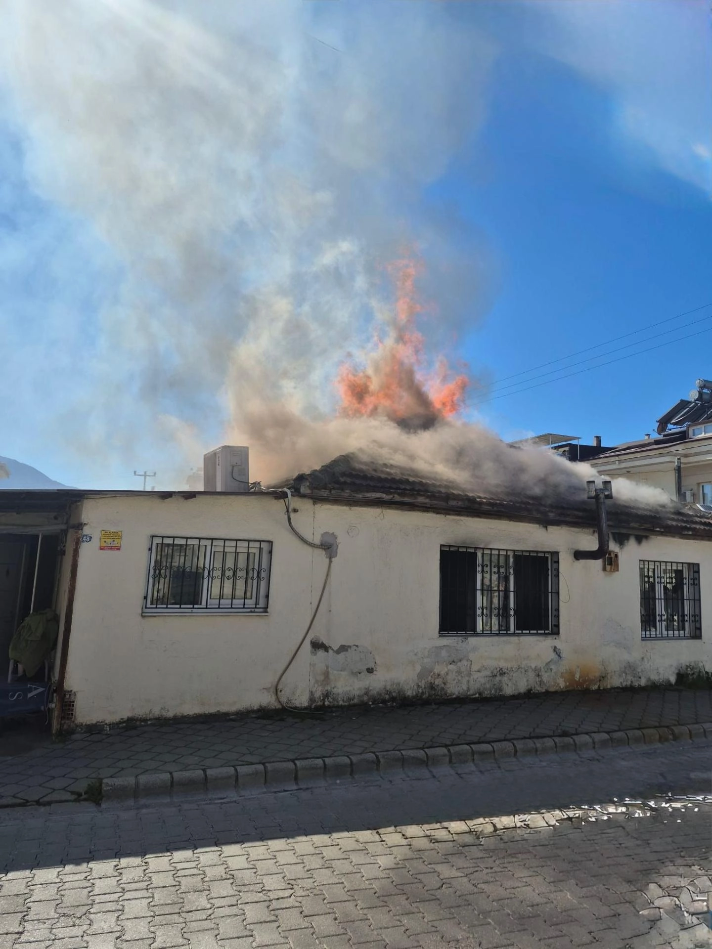 Cami Mahallesi Ahmet Gazi Caddesi'ndeki tek katlı evde, henüz belirlenemeyen nedenle yangın çıktı.