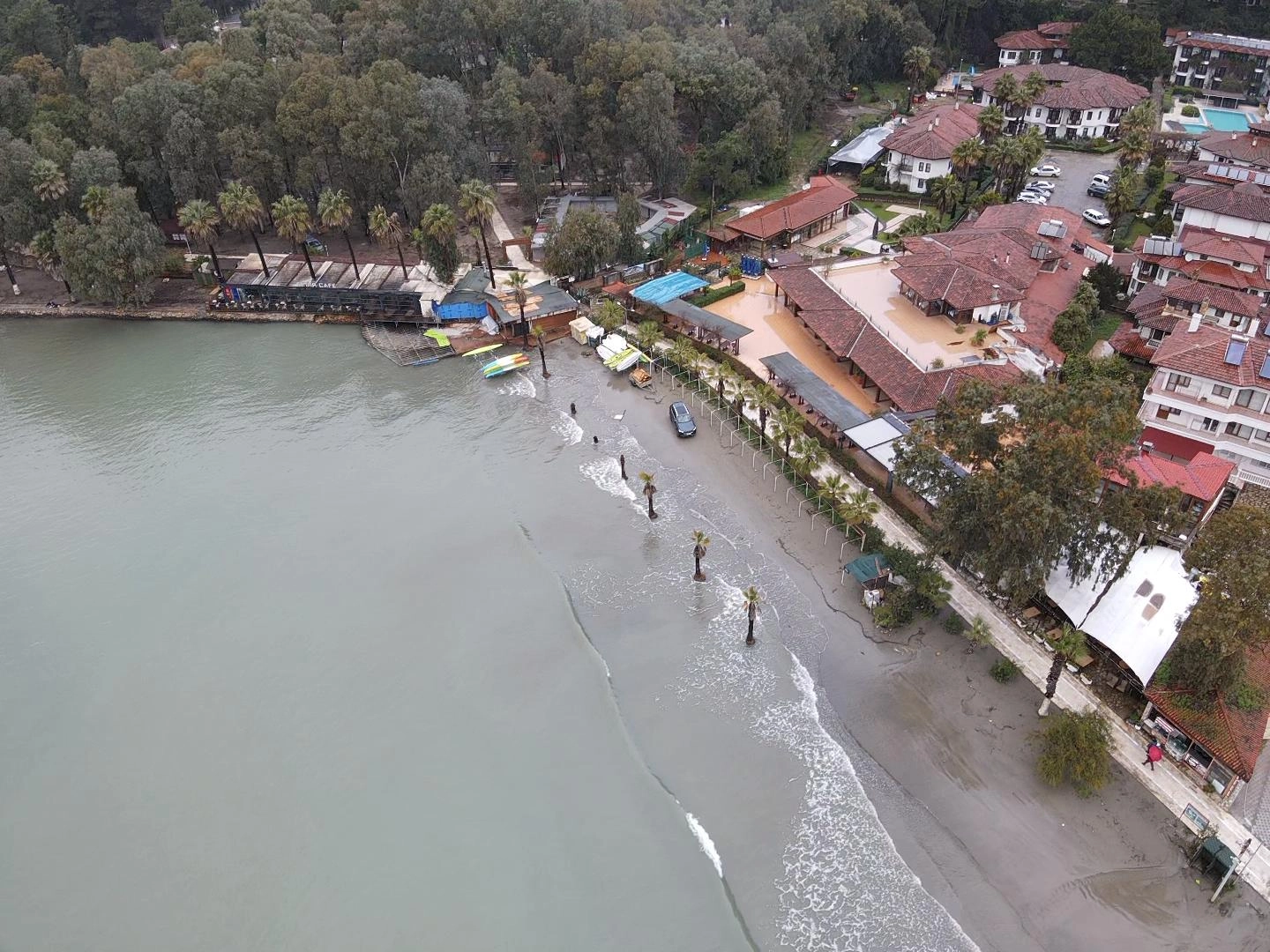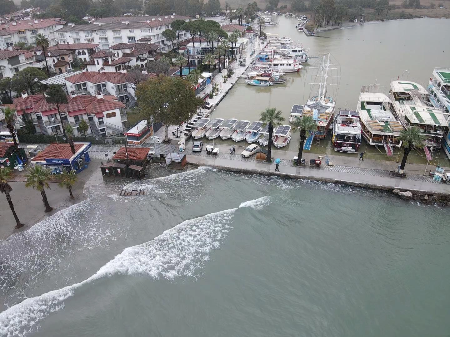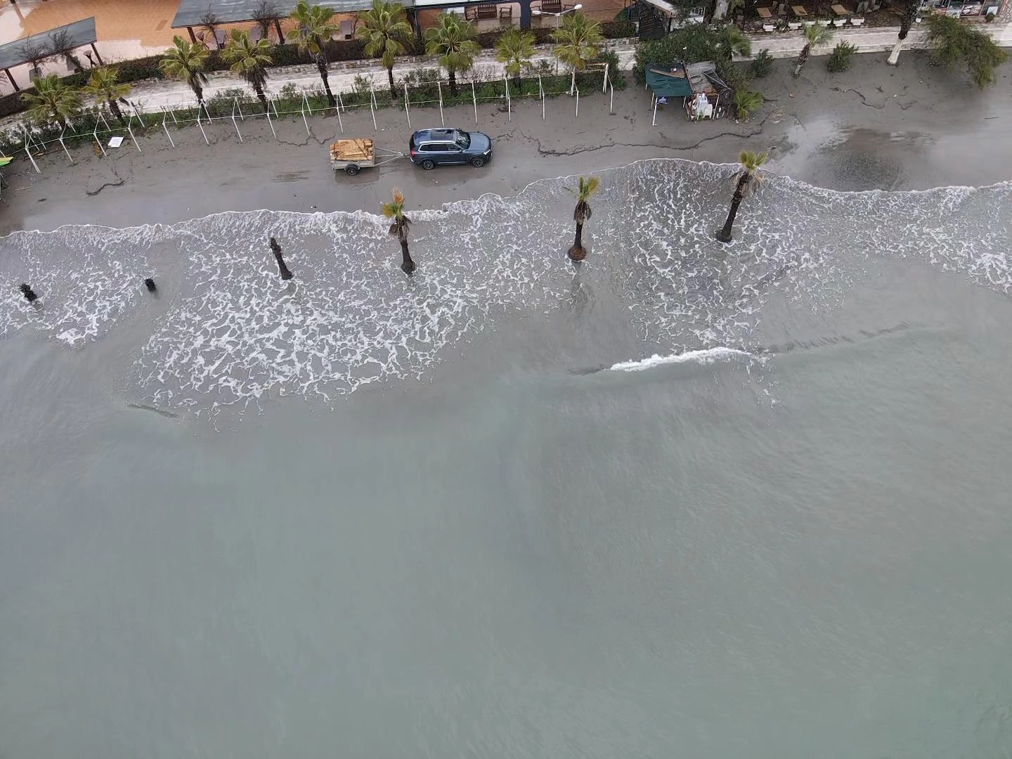 Su seviyesi, sahil boyunca uzanan bazı palmiyelerin gövdesine kadar yükseldi. Günübirlik tur düzenleyen tekneler de seferlerini iptal etmek zorunda kaldı. Denize açılamayan tekneler, güvenlik amacıyla limana bağlanarak beklemeye geçti.