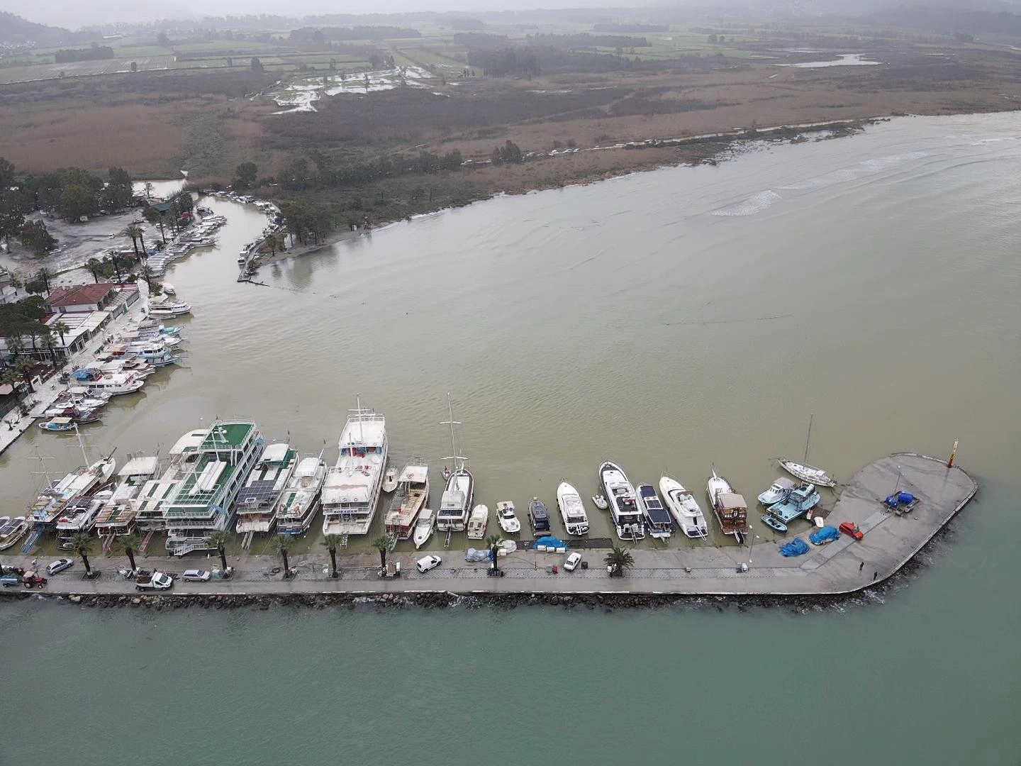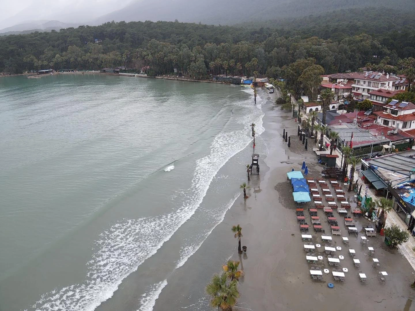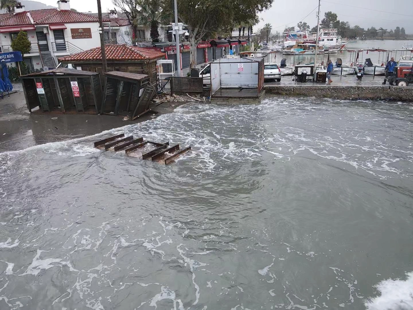 Su seviyesi, sahil boyunca uzanan bazı palmiyelerin gövdesine kadar yükseldi. Günübirlik tur düzenleyen tekneler de seferlerini iptal etmek zorunda kaldı. Denize açılamayan tekneler, güvenlik amacıyla limana bağlanarak beklemeye geçti.