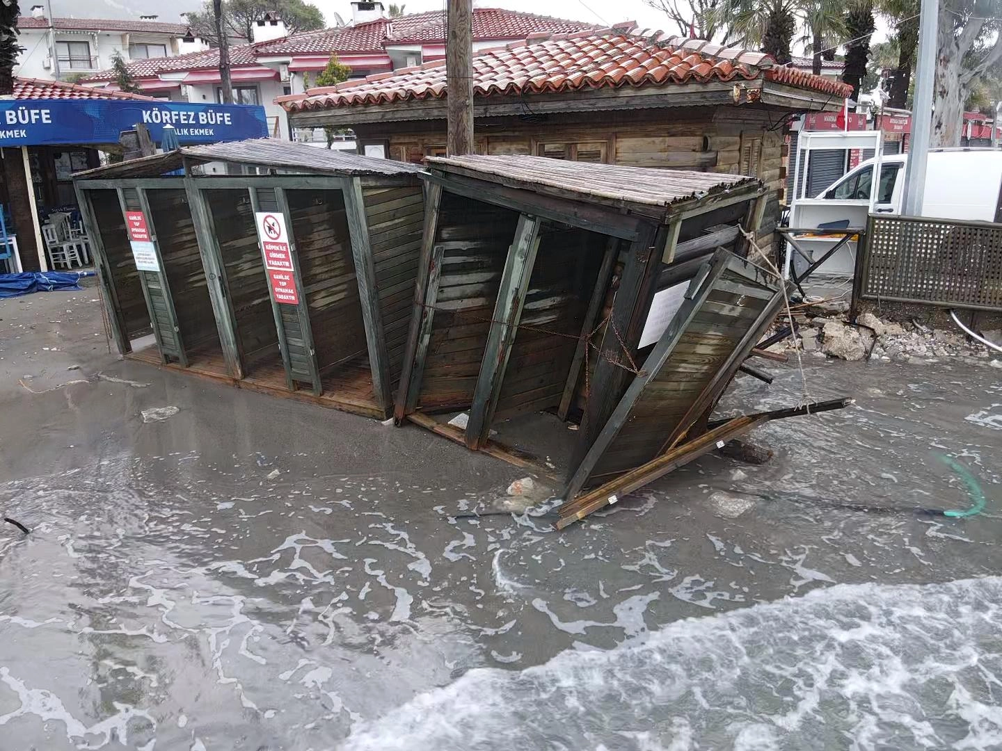 Sahilde bulunan kabinlerin de zarar gördüğü görüldü.