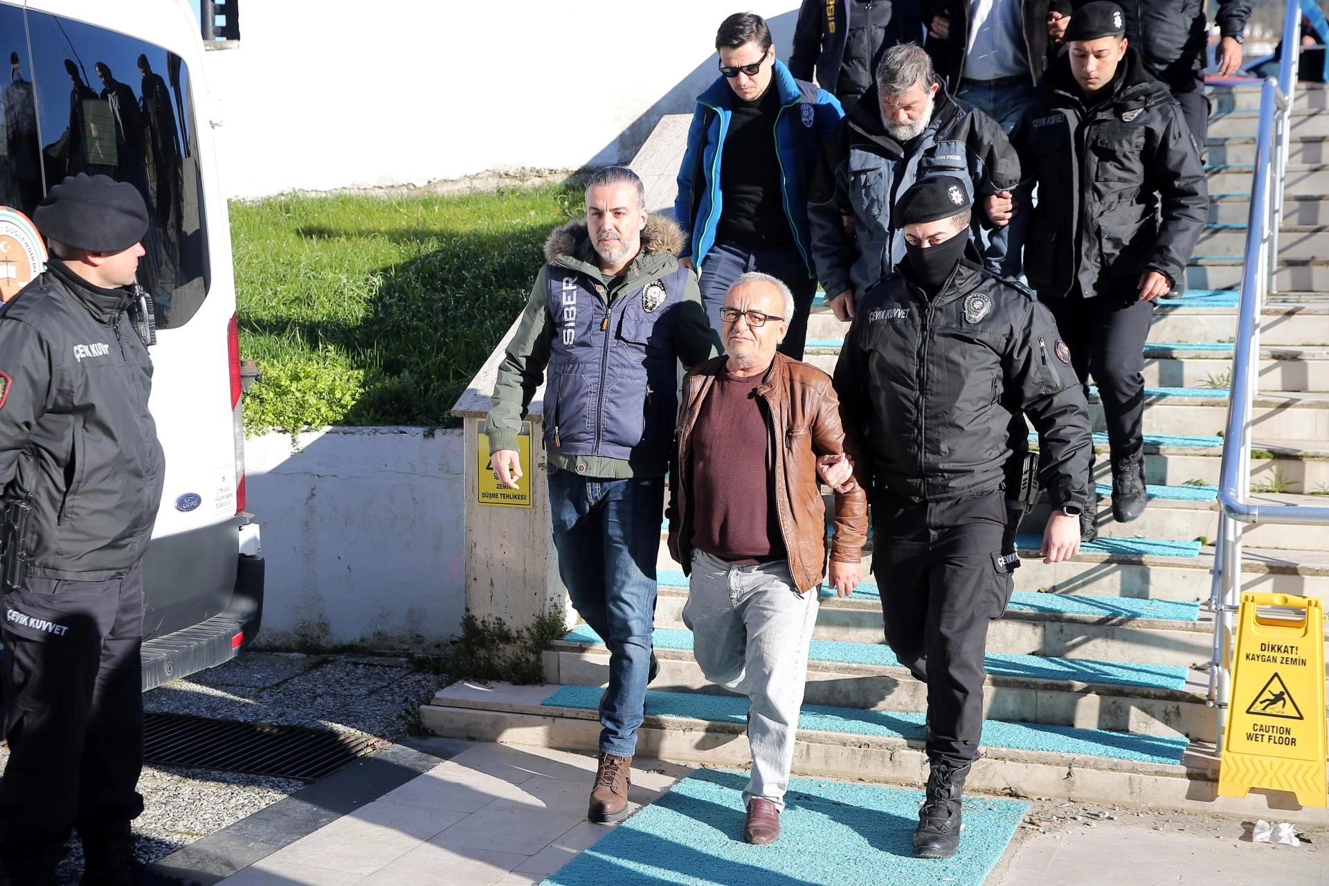 Sağlık kontrolünün ardından 8 şüpheli, adliyeye sevk edildi.