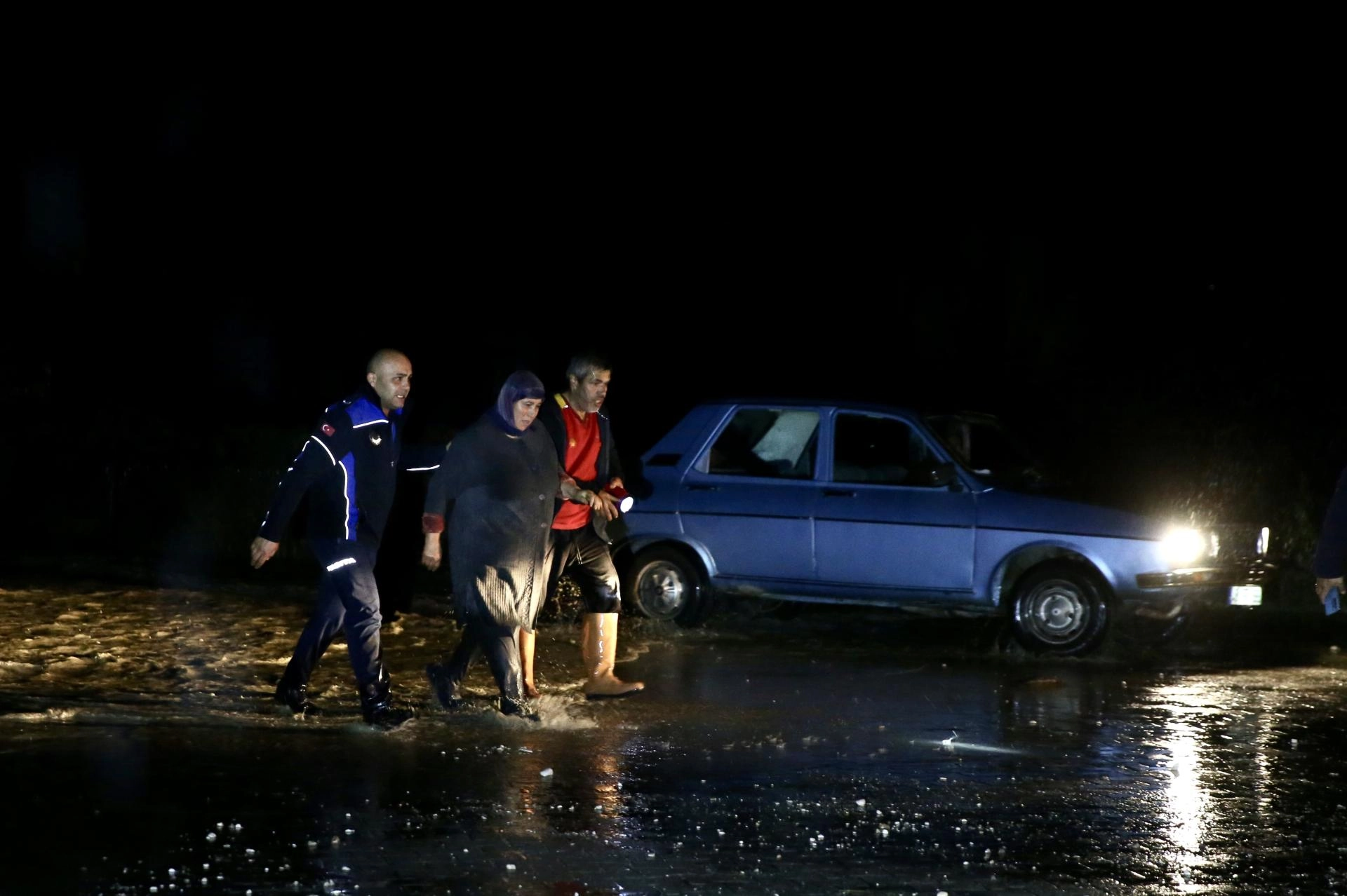 Su basan bazı evlerde yaşayanlar, ekiplerin yardımıyla mahalleden çıkarıldı.