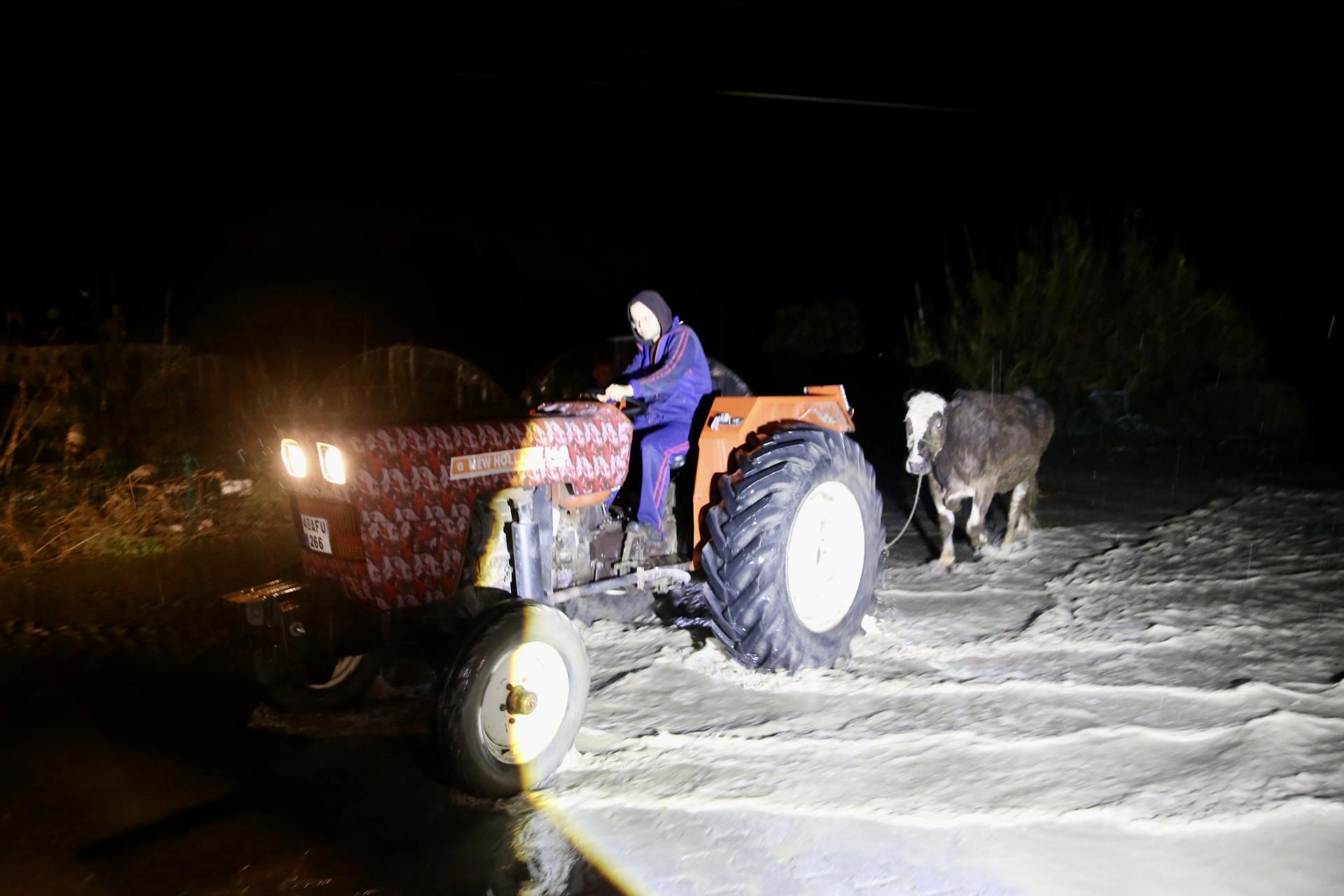 Traktörlerin arkasına bağlanan bazı büyükbaş hayvanlar ise güvenli bölgeye alındı.