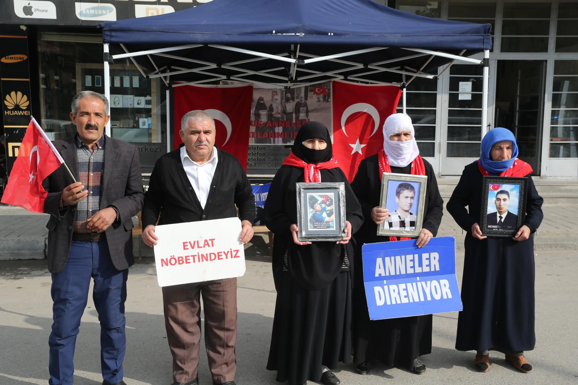 "Anneler direniyor", "Evlat nöbetindeyiz" ve "Artık yeter, yakamızdan düşün" yazılı pankartlar açan aileler, umutla bekledikleri çocuklarına teslim olmaları çağrısında bulundu.