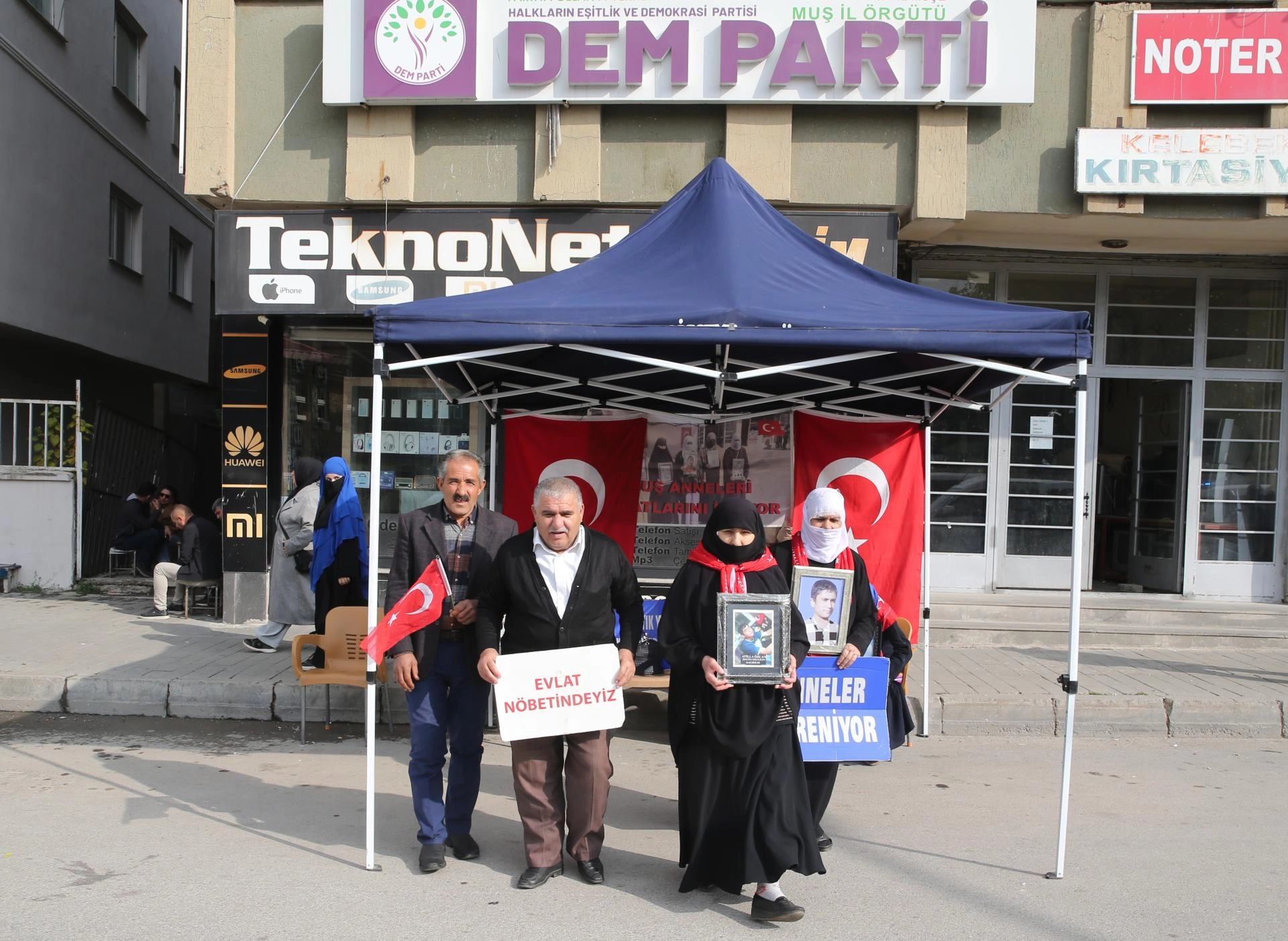 MUŞ (AA) - Muş'ta çocukları terör örgütü PKK tarafından kaçırılan aileler, DEM Parti İl Başkanlığı önündeki eylemlerine devam etti.