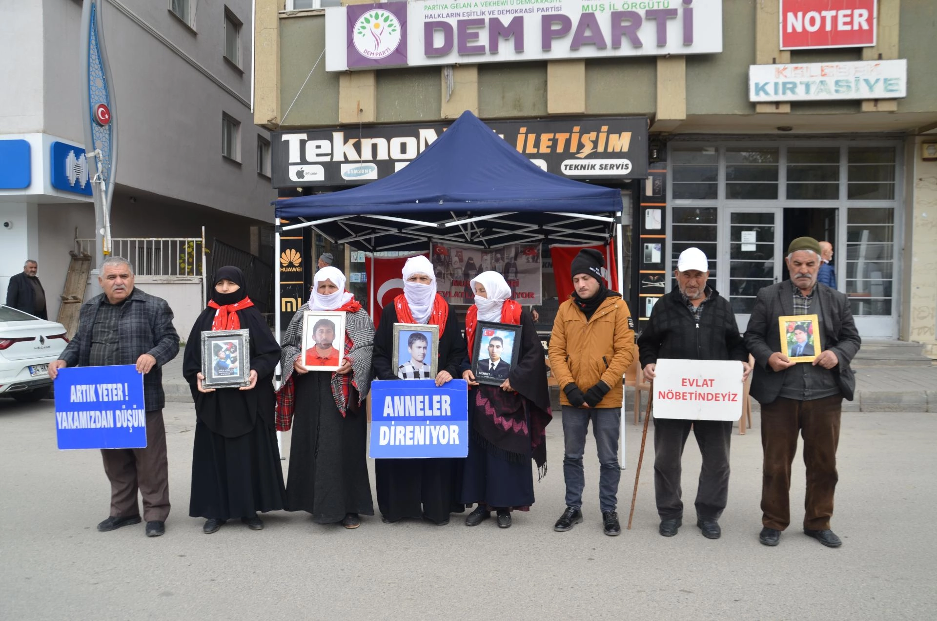 MUŞ (AA) - Muş'ta çocukları terör örgütü PKK tarafından kaçırılan aileler, DEM Parti İl Başkanlığı binası önündeki eylemlerine devam etti.