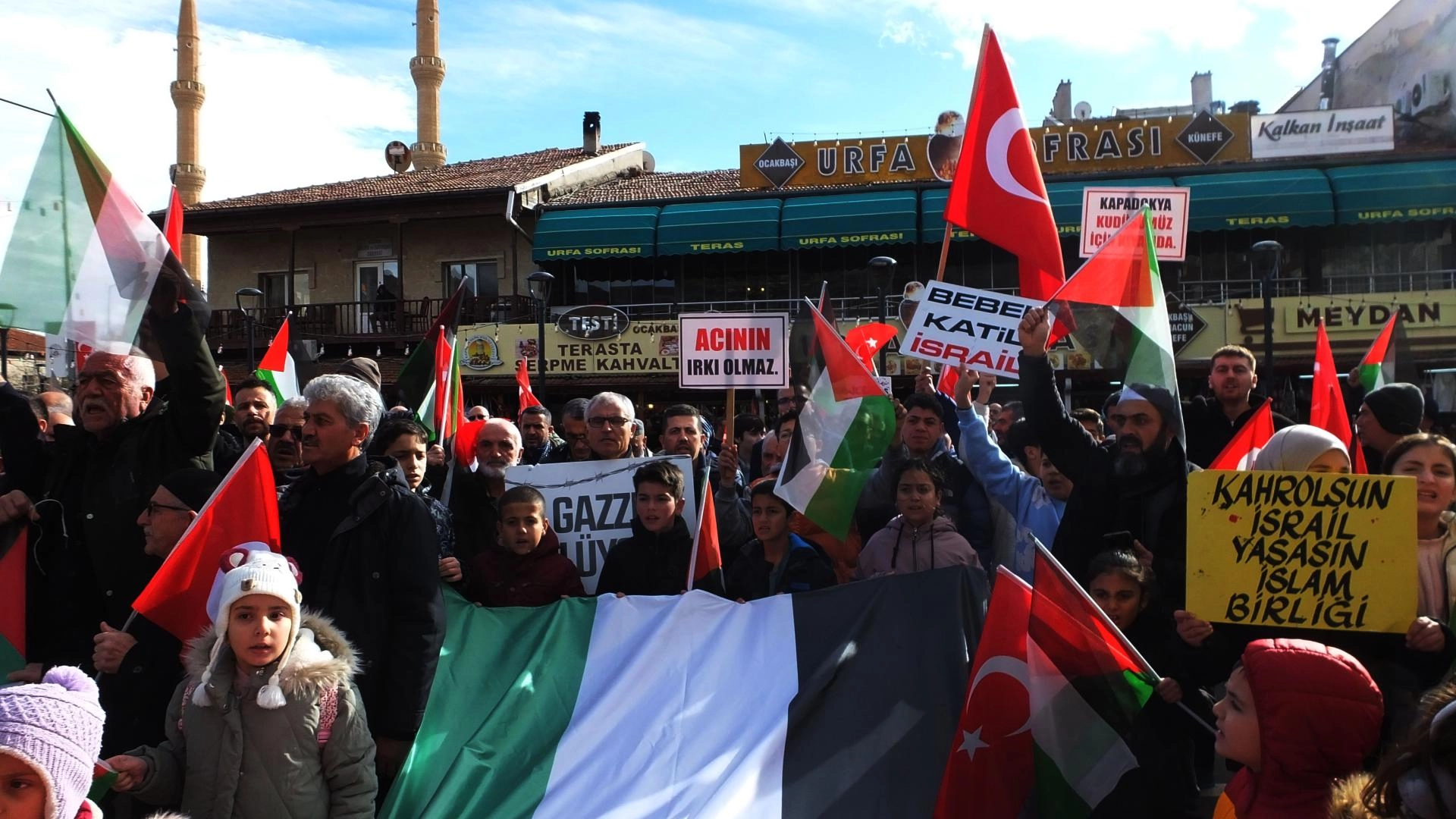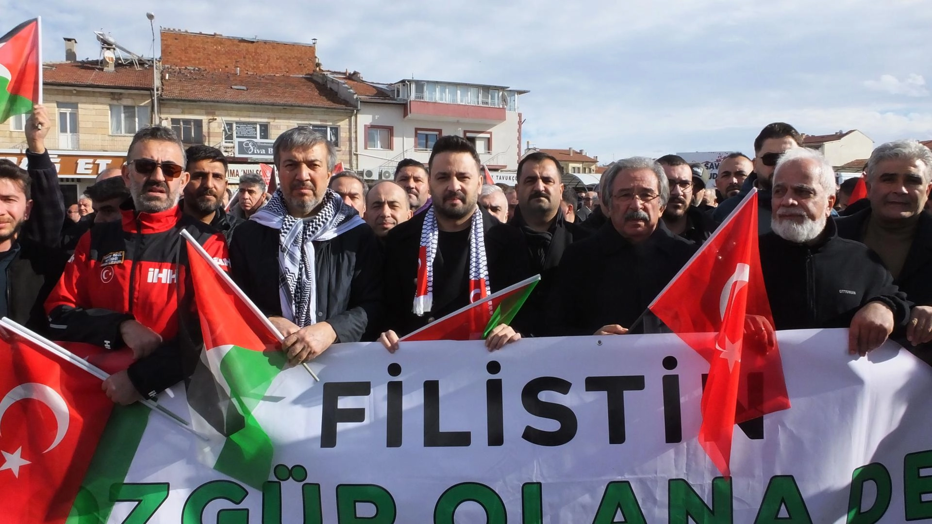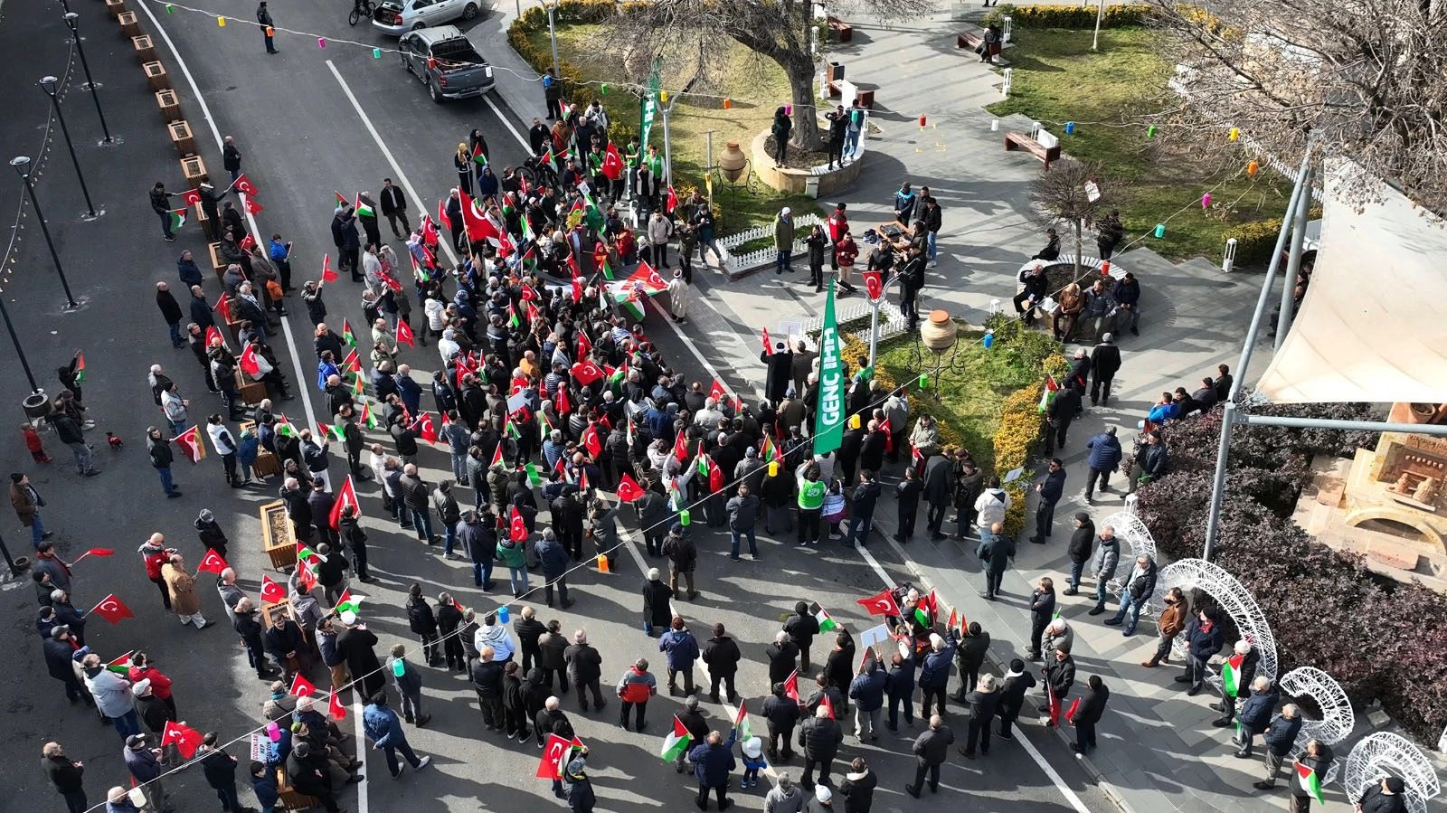 Nevşehir Filistin'e Destek Platformu tarafından gerçekleştirilen etkinlik kapsamında katılımcılar ellerindeki Türk ve Filistin bayrakları ile Avanos Pazaryeri mevkisinde toplandı.