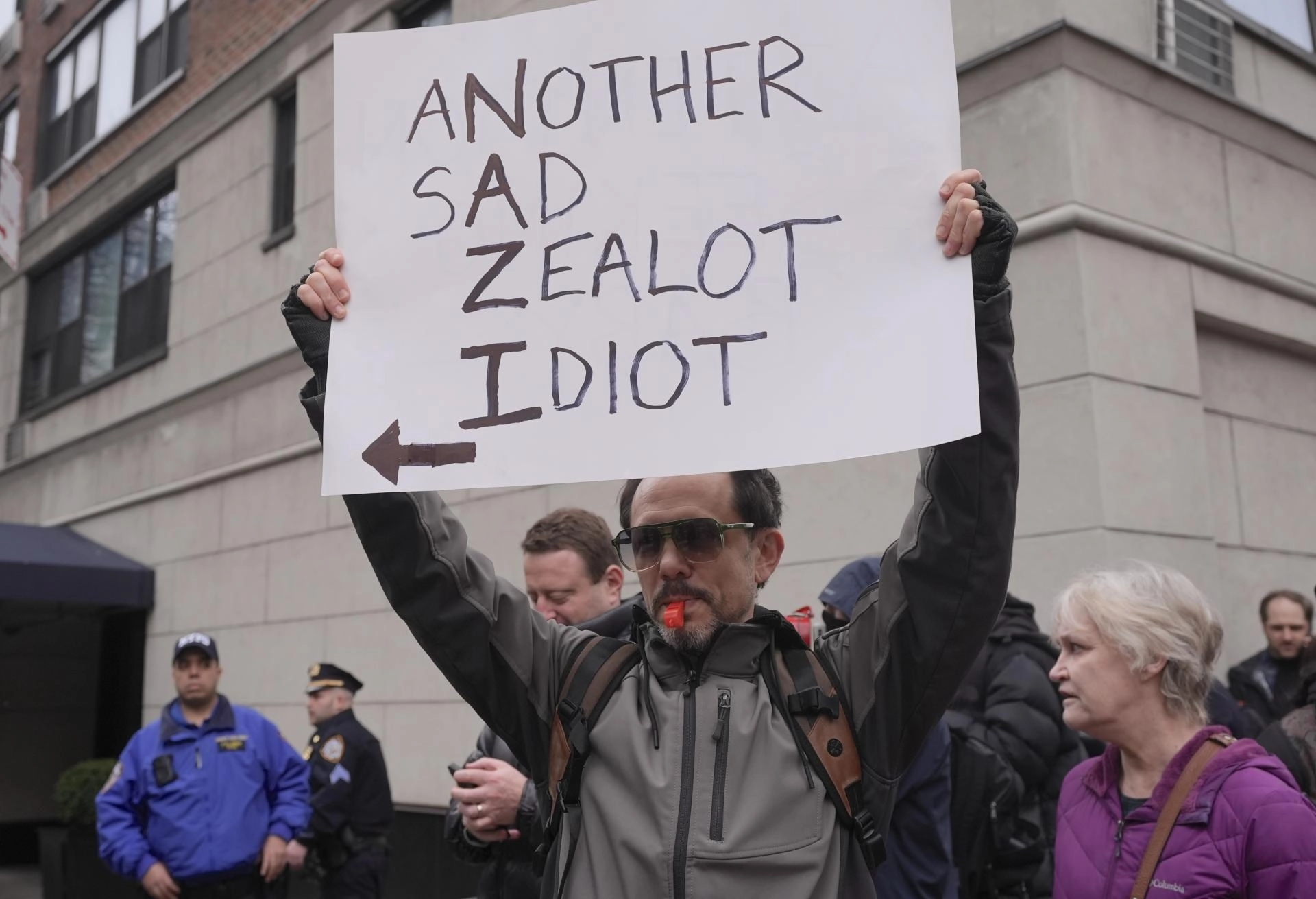Manhattan’daki konutun önünde bir araya gelen Müslüman karşıtı gruba, civarda toplanan karşı bir grup tepki gösterdi.