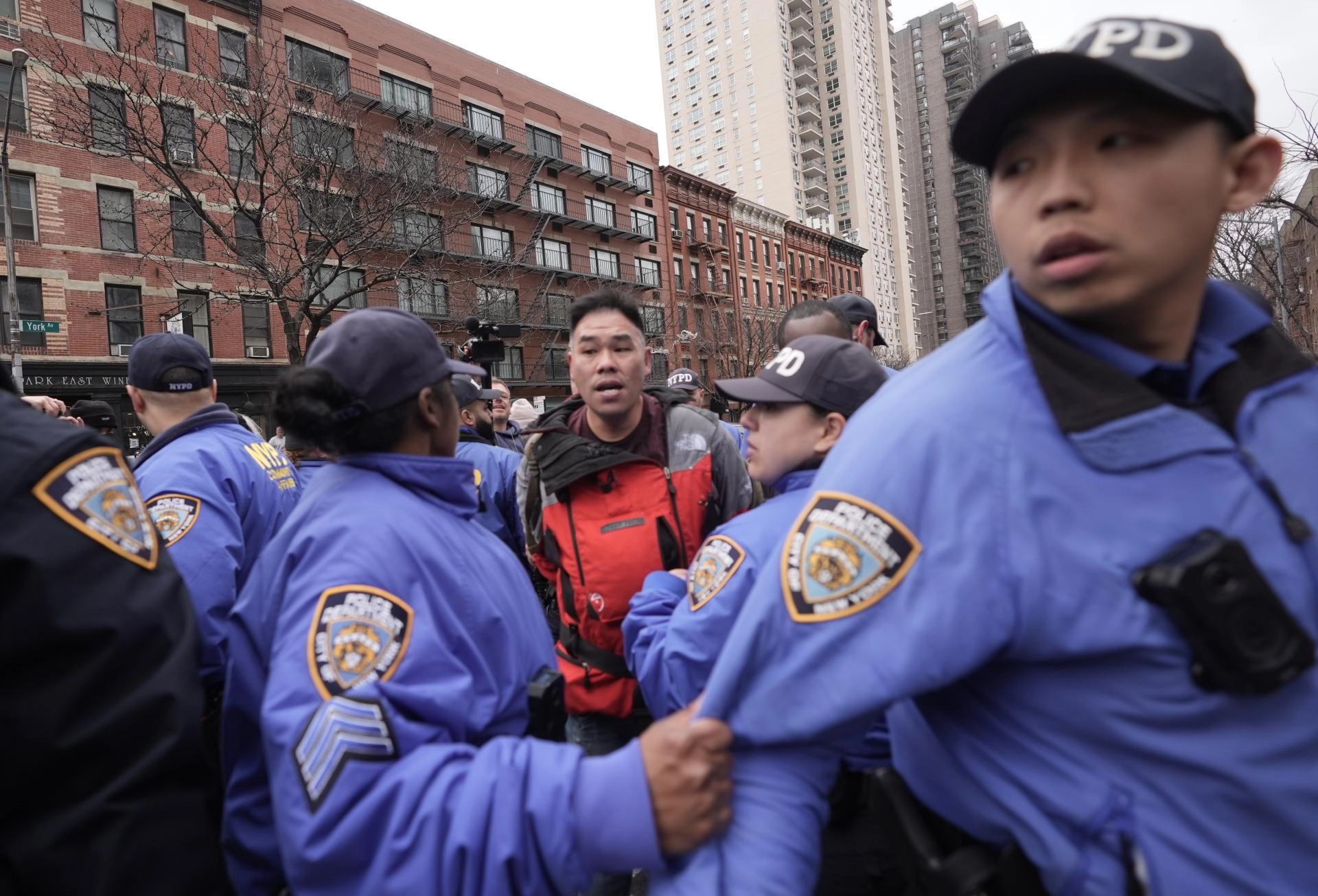 New York Polisi, sis bombası atan kişiyi hızlıca gözaltına alırken, gruplar arasında çıkan gerginlik ve arbedeyi yatıştırmak için iki taraftan da bazı kişilerin gözaltına alındığı görüldü.