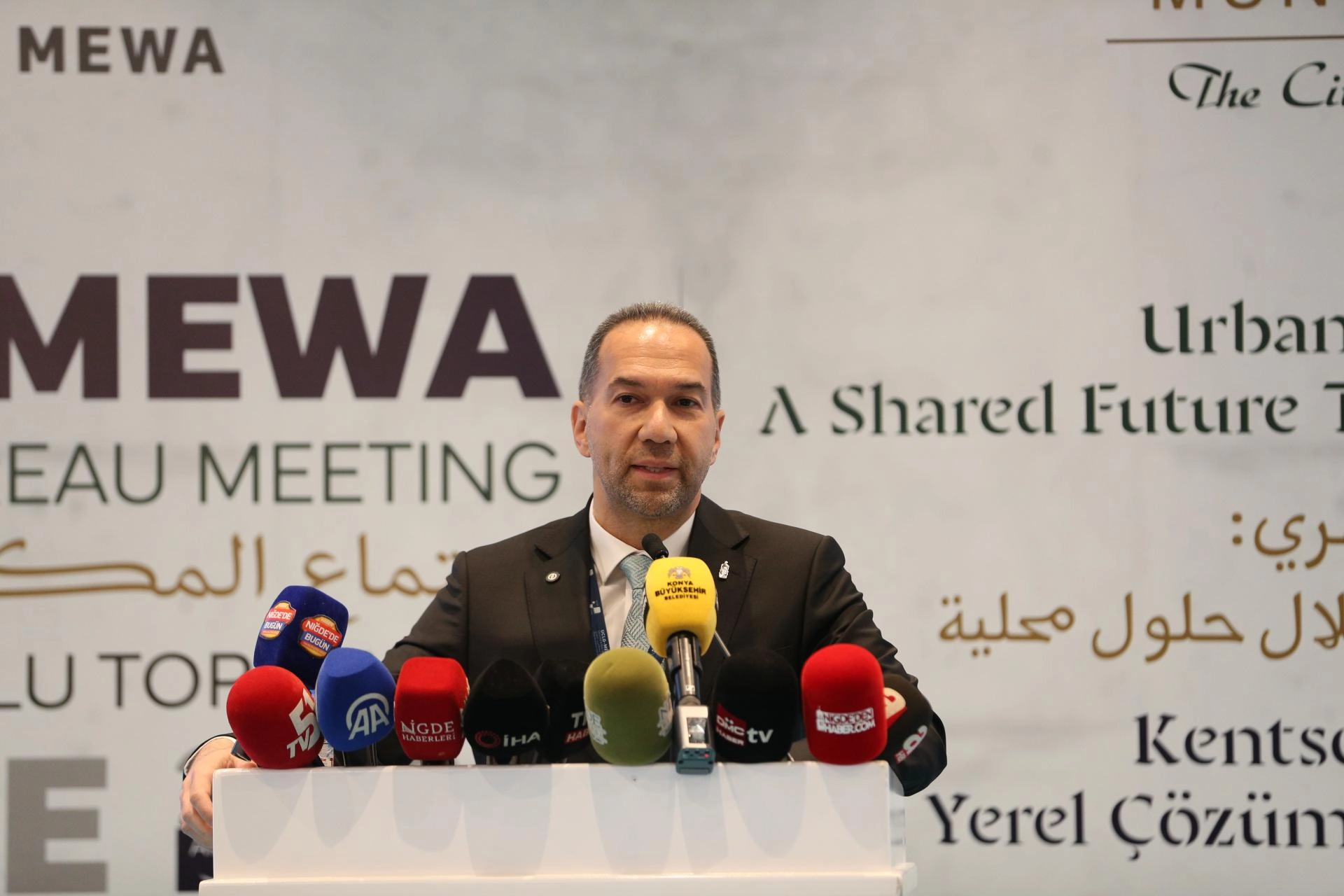 "Farklı coğrafyalardan, kültürlerden ve tecrübelerden gelen üyelerimizin ortak bir ideal etrafında buluşması, UCLG-MEWA'yı eşsiz ve güçlü kılan en temel unsurdur. Bu yapı yalnızca kurumları değil umutları, çözümleri ve ortak geleceğe dair iradeyi bir araya getirmektedir. Bugün UCLG-MEWA çatısı altında yer alan her bir üye, insanlık adına sorumluluk taşıyan birer öncü ve vizyon sahibidir. Yerelden yükselen bu güçlü ses, küresel meseleler karşısında kararlı bir duruş sergileyebilmenin en somut göstergesidir. Bugün bölgemiz, iklim değişikliğinin en yoğun hissedildiği alanlardan biri olan su stresi, gıda güvenliği, hızlı kentleşme ve artan eşitsizliklerle karşı karşıyadır. Aynı zamanda çatışmalar ve insani krizler, şehirlerimizin üzerindeki baskıyı her geçen gün daha da arttırmaktadır. İsrail'in Gazze'de başlattığı, İran ve Lübnan başta olmak üzere tüm bölgeye yaymış olduğu insani trajedi, hepimize yerel yönetimlerin sorumluluğunu bir kez daha hatırlatmaktadır. Vatandaşlarımızın güveniyle görev üstlenen yerel yöneticiler, hizmet üretmenin yanında dayanışmayı büyüten, insan onurunu koruyan ve yeniden inşa süreçlerine katkı sunan aktörler olmalı."
