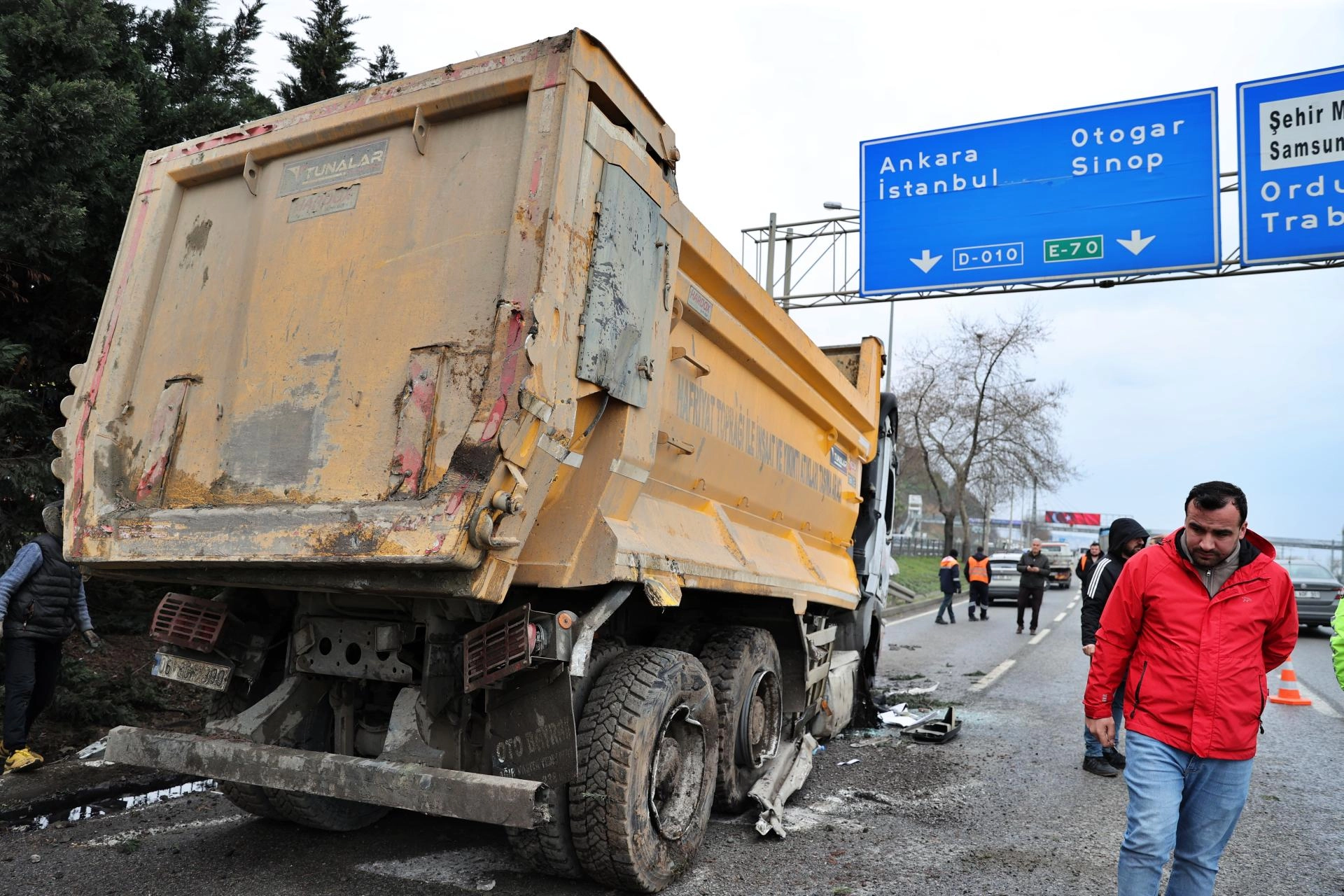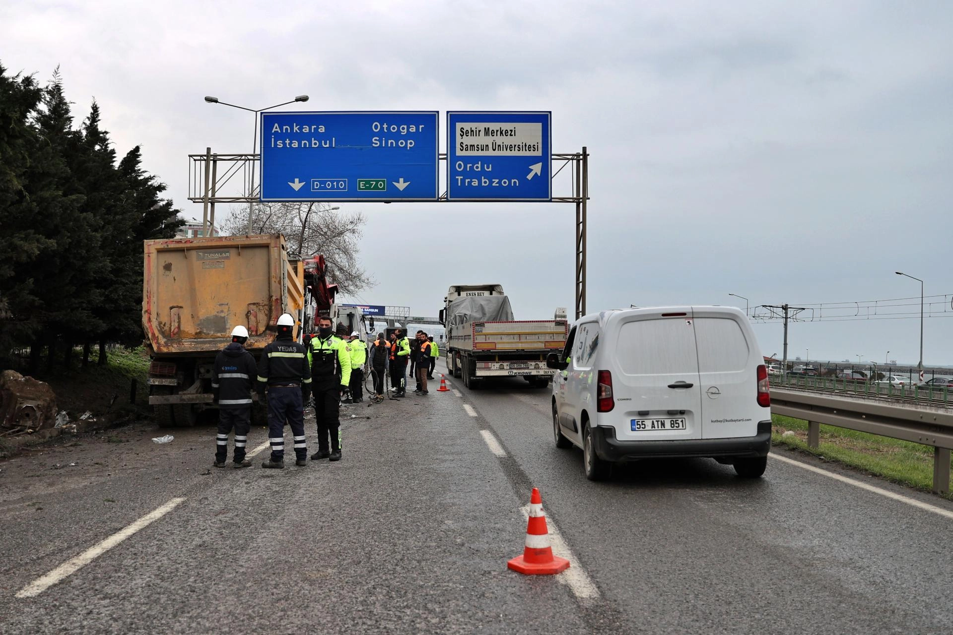 SAMSUN (AA) - Samsun'un Canik ilçesinde devrilen hafriyat kamyonu, Ordu-Samsun kara yolunda ulaşımın aksamasına neden oldu.