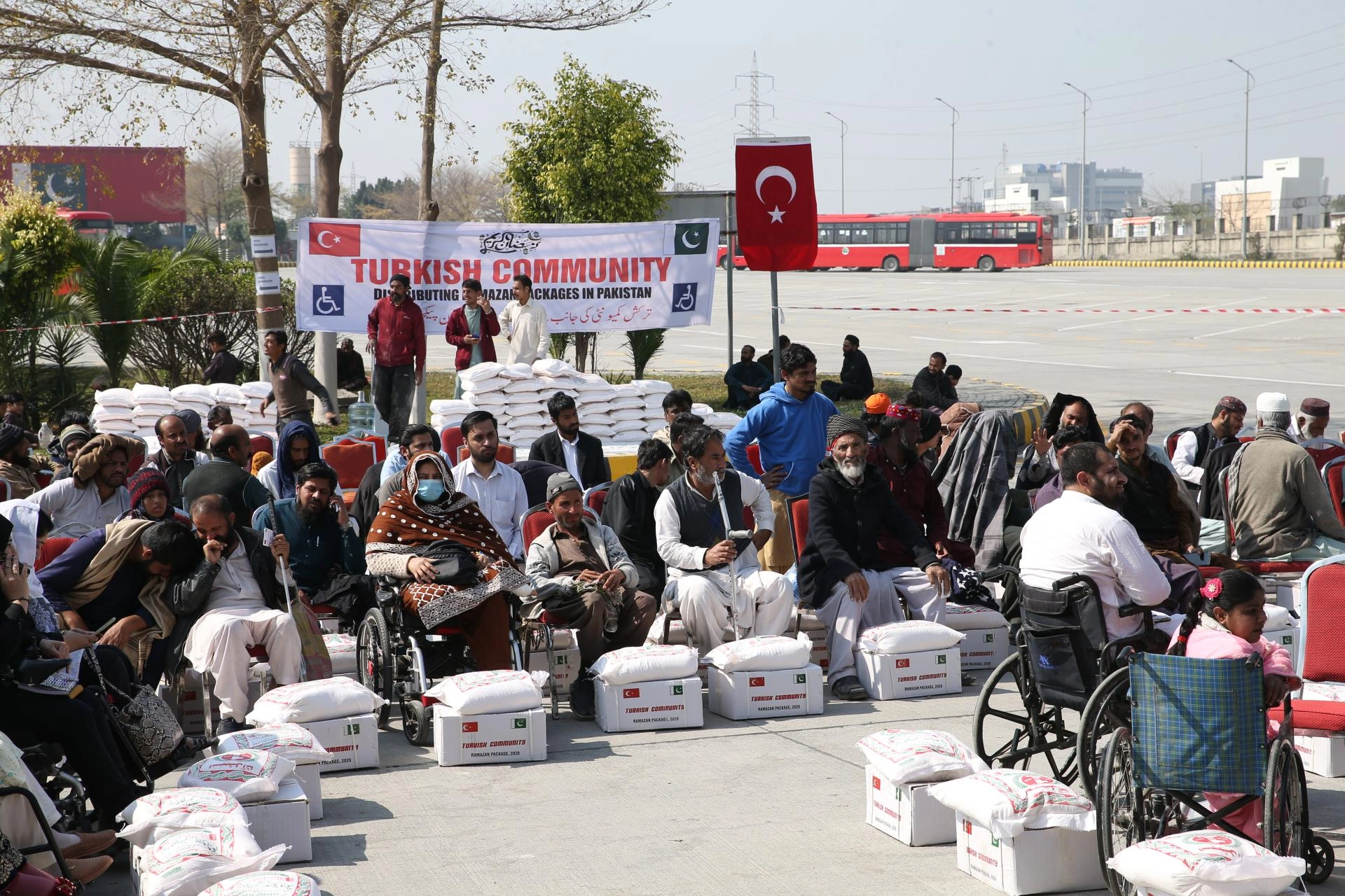 Başkent İslamabad’da düzenlenen programda ülkede ikamet eden Türk vatandaşları tarafından ihtiyaç sahibi ailelere 800 koli erzak dağıtıldı.