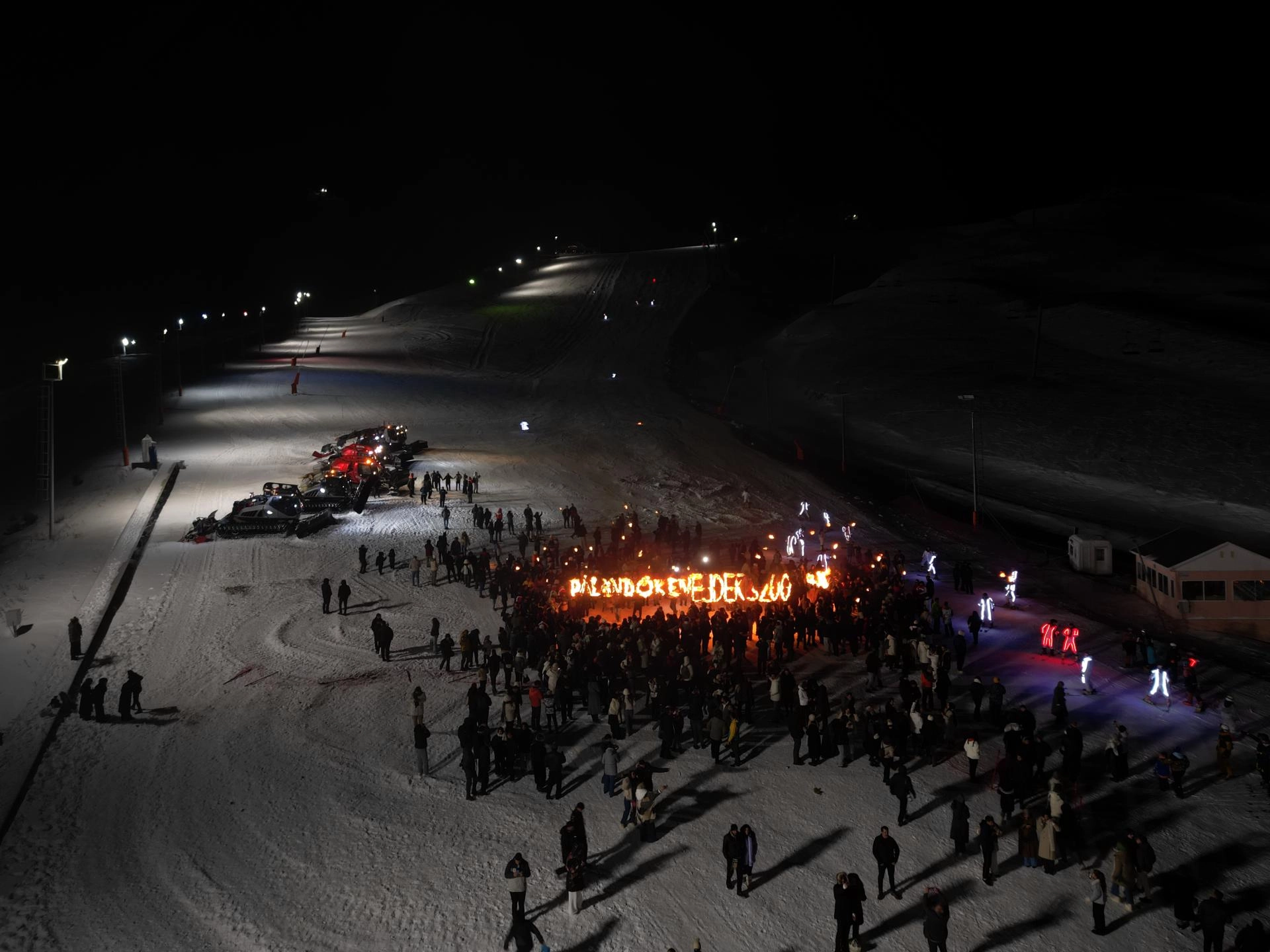 Sezon açılışı, meşalelerle zirveden inen kayakçıların "Palandöken Ejder 3200" yazısını ateşlemesiyle gerçekleştirildi.